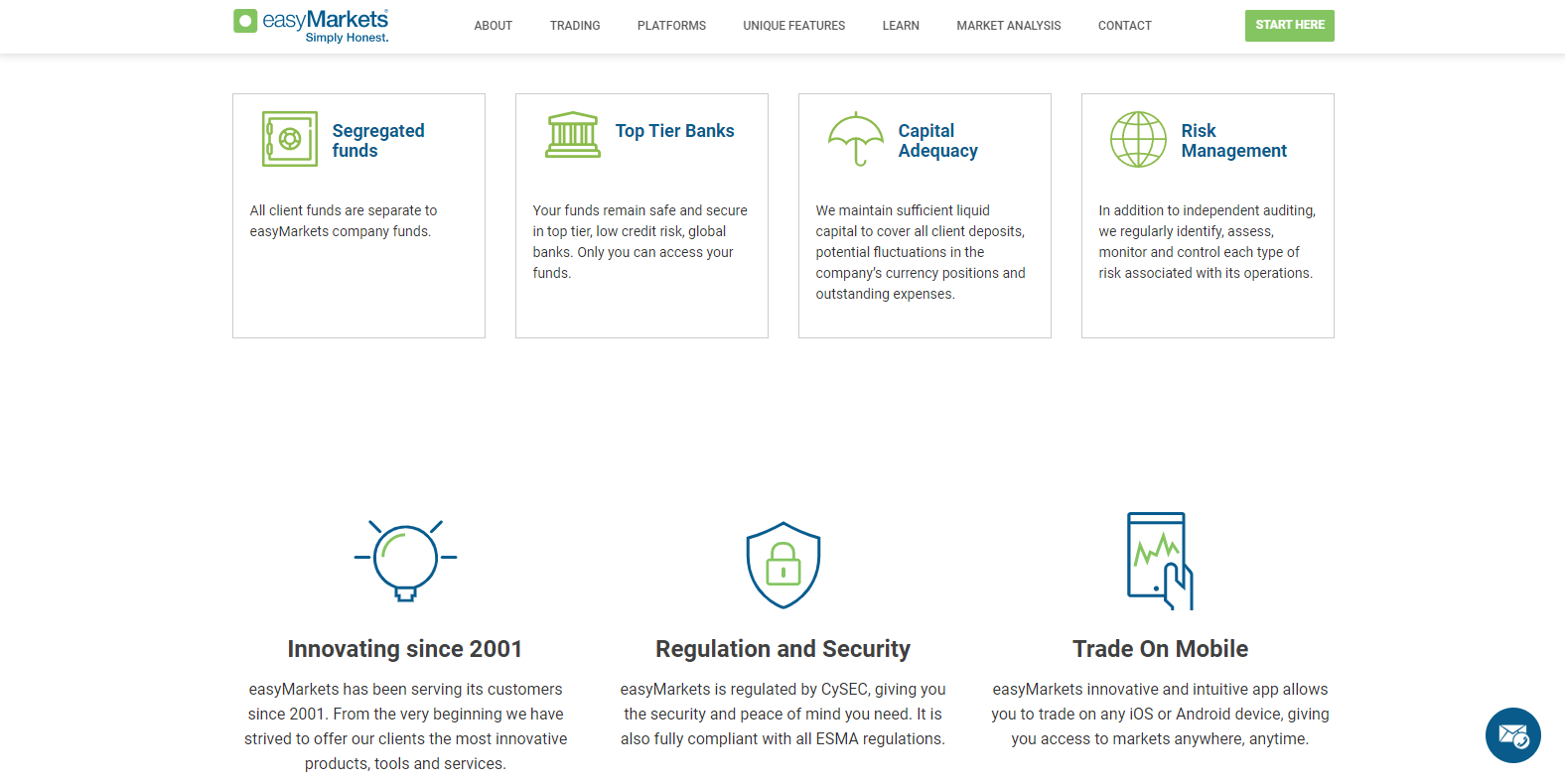 EasyForex Trading LTD, the owner of easyMarkets, is regulated by the Cyprus Securities & Exchange Commission (CySEC) under license number is 079/07. This broker is compliant with the Financial Instruments Directive 2014/65/EU or MiFID II and the EU’s 5th Anti-Money Laundering Directive. Per EU Directive 2014/49/EU, the Investor Compensation Fund (CIF) protects traders up to €20,000 in the event of a default. EasyMarkets Pty LTD is also authorized and regulated by the Australian Securities and Investments Commission (ASIC).