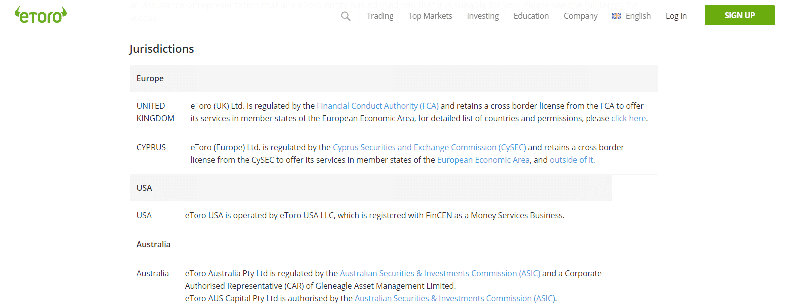 Regulatory oversight for eToro consists of the Cyprus Securities and Exchange Commission (CySEC), the UK Financial Conduct Authority (FCA), and the Australian Securities and Investments Commission (ASIC). MiFID II and the EU’s 5th Anti-Money Laundering Directive govern CySEC portfolios. Client deposits into accounts opened in Cyprus and the UK are protected by the Cypriot Investor Compensation Fund (CIF) and the UK Financial Services Compensation Scheme (FSCS), up to €20,000 and £85,000, respectively. eToro USA supervision exists through FinCEN, where this broker maintains registration as a Money Services Business.