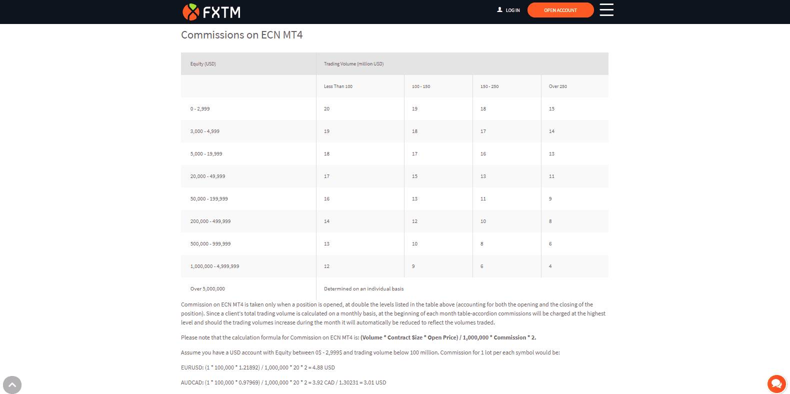 FXTM deploys a hybrid market maker/ECN execution model. The former grants commission-free spreads of 1.3 pips in the Standard account, and 0.0 pips in the Pro account, for a minimum deposit of $25,000. The Pro account gives active traders a minimum spread of 0.1 pips for a commission between $4 and $20 per $1,000,000 in nominal trading value. eToro advertises commission-free trading, applicable to unleveraged buy positions only, but compensates with excessive mark-ups, typical for market makers, with the EUR/USD at 1.0 pips, and equity spreads significantly above competitors, plus a 0.9% commission charge.