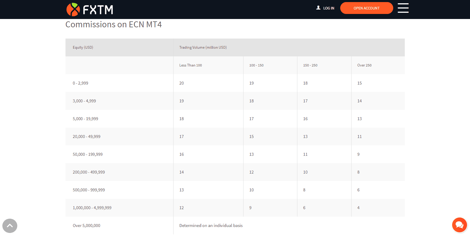 FXTM grants commission-free CFD trading in unleveraged accounts only. The ECN Zero version commences with a minimum spread of 1.5 pips, lowered to 1.3 pips in the Standard account. 0.1 pips for a commission between $4 and $20 per round lot in the ECN MT4 account combine tight spreads with excessive commissions. A significantly more competitive cost structure exists at FXCM, where commission-free spreads start at 0.6 pips, reduced to 0.2 pips for a commission of $25 per $1,000,00 or $2.50 per lot.