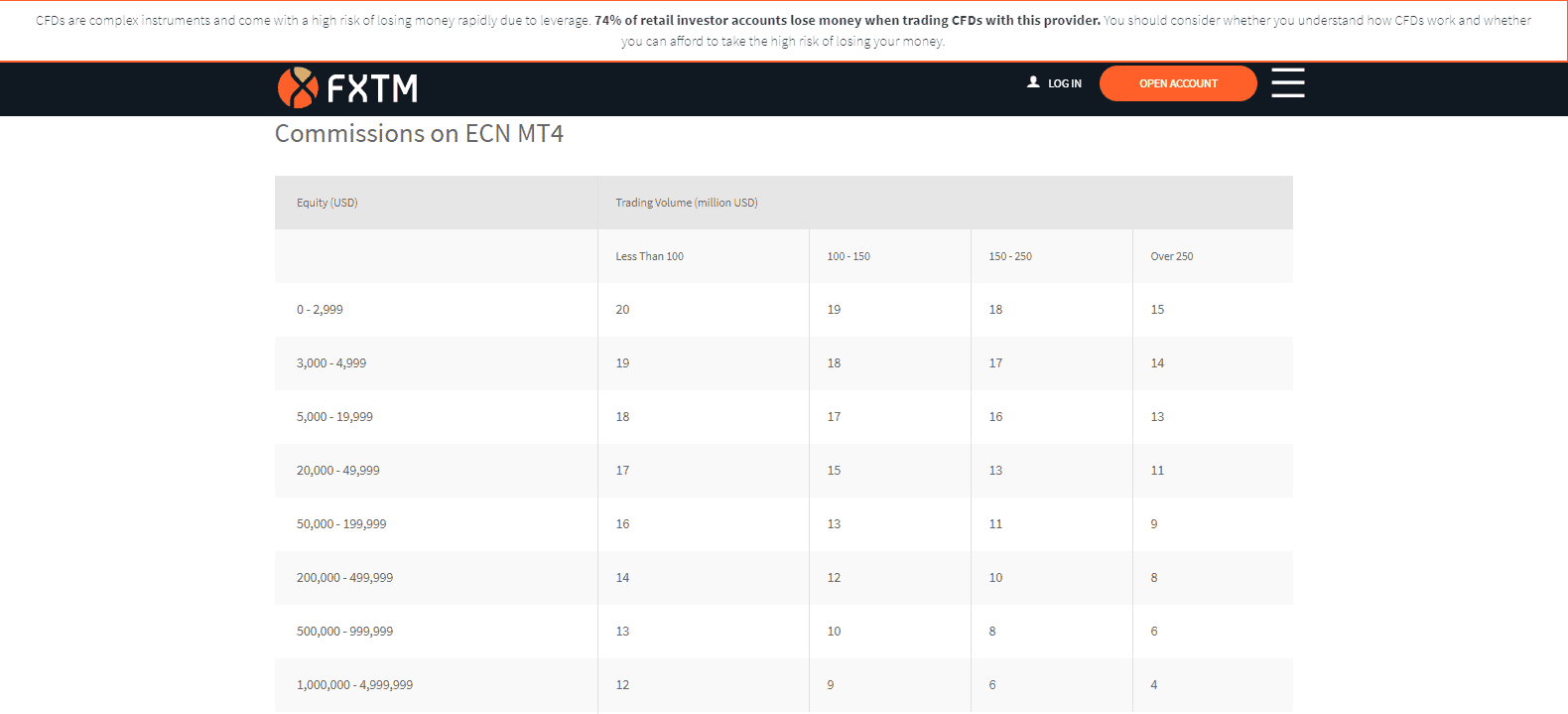 FXTM offers excessive spreads from 1.5 pips in the ECN Zero Account. The Standard account starts from 1.3 pips, which is reduced to as low as 0.0 pips in the Pro Account once the balance exceeds $25,000 or a currency equivalent. Spreads in the ECN MT4 account begin from 0.1 pips for a commission between $4 and $20 per round lot. Traders are offered commission-free equity CFD trading with costs as low as 0.1 pips. HotForex treats clients to a more cost-effective trading environment. With a commission-free Premium account, spreads increase from 1.0 pips. The Zero Spread account features a spread as low as 0.0 pips for a commission between $3 and $6 per round lot. Swap rates on overnight leveraged positions apply, and both brokers are transparent about trading costs involved. Corporate actions like dividends and mergers impact equity and index positions, and are passed onto traders’ portfolios. Third-party charges for deposits and withdrawals apply, but the overall fee structure is kept at a minimum at both brokers. Most retail traders will discover a friendlier long-term cost structure at HotForex. FXTM reduces the commission based on equity and transaction size.