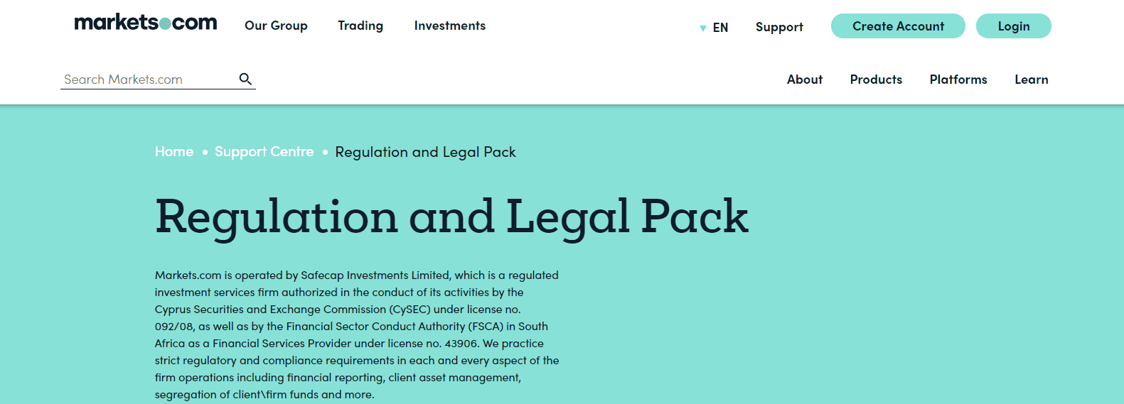 While the UK Financial Conduct Authority (FCA) regulates the corporate ownership of Markets.com, the Cyprus Securities and Exchange Commission (CySEC) and the Financial Sector Conduct Authority (FSCA) in South Africa are the regulators of this broker. The Cypriot entity complies with the Financial Instruments Directive 2014/65/EU or MiFID II, and the EU’s 5th Anti-Money Laundering Directive. Client deposits are fully segregated and protected by the Investor Compensation Fund (CIF) up to €20,000 per EU Directive 2014/49/EU. Markets.com maintains a secure and trustworthy trading environment.