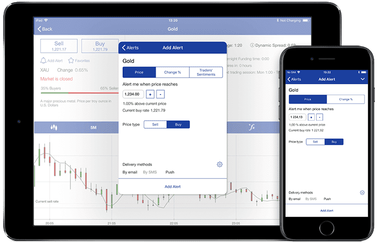 Using Plus500 alerts, you can create specific criteria regarding trader sentiment, price movements, and change percentages. The platform will notify you via SMS, email, or push notifications when the market hits those criteria.