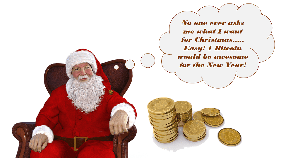 What do you think Kris Kringle, St. Nicholas, Father Christmas would want if he could put himself on the “nice” list? This year, aside from a nap and a generous cup of hot cocoa, we’re guessing that Santa is joining the millions of people wishing for bitcoin.