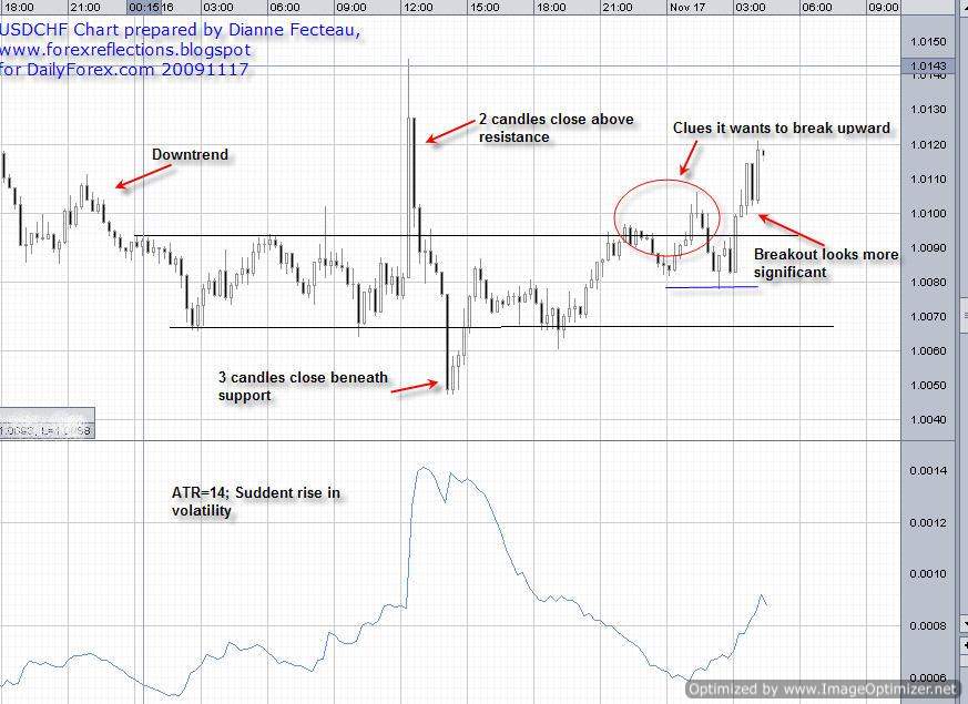 Smaller Sized Breakout Candlestick (for example less than 1X ATR)