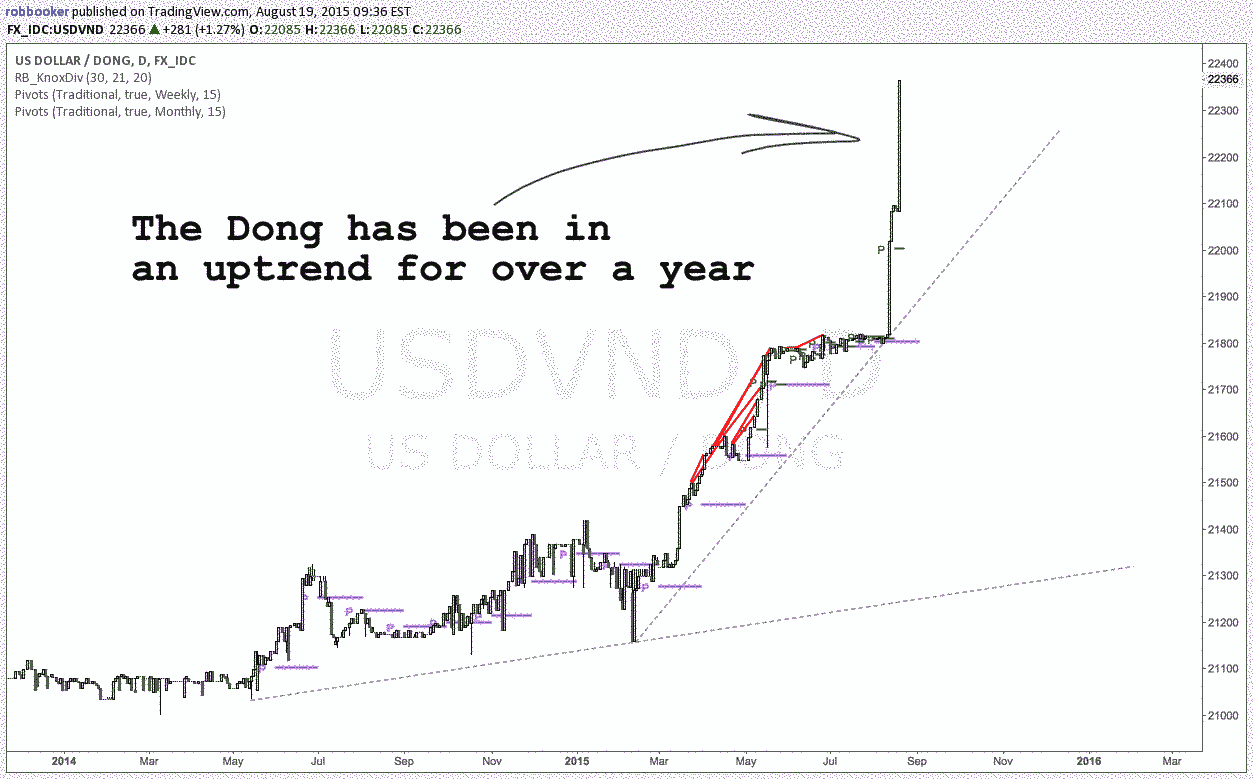 This question is particularly important for anyone who insists on trading anything but the major currency pairs. First of all, and perhaps most importantly, did you know that Vietnam’s currency is called the Dong? That is too good to be true. For simplicity’s sake and in case you do not yet trust me here’s a chart of the Dong: