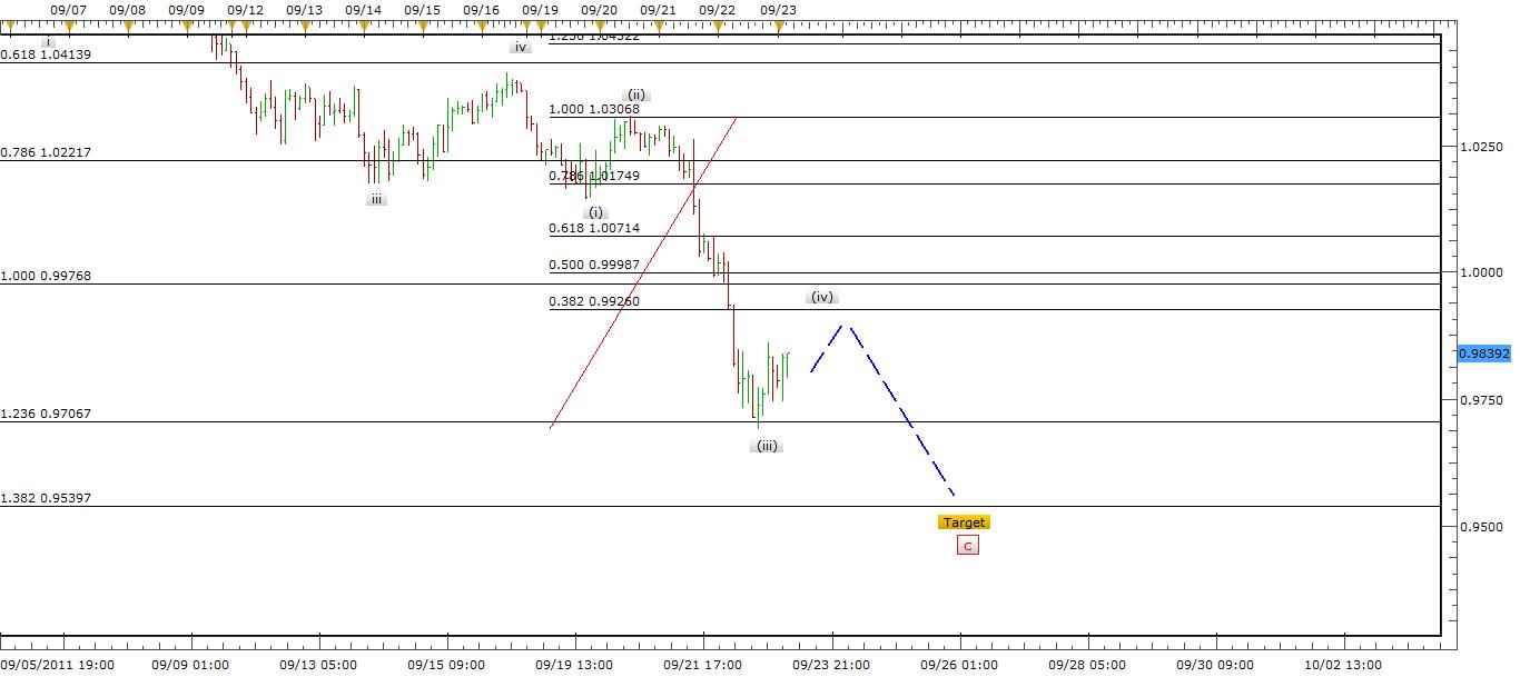 Description: We are in wave (iv) in v in C wave. Trend still have room to fall further targeting 1.382 Fib level or 0.95397 price point.