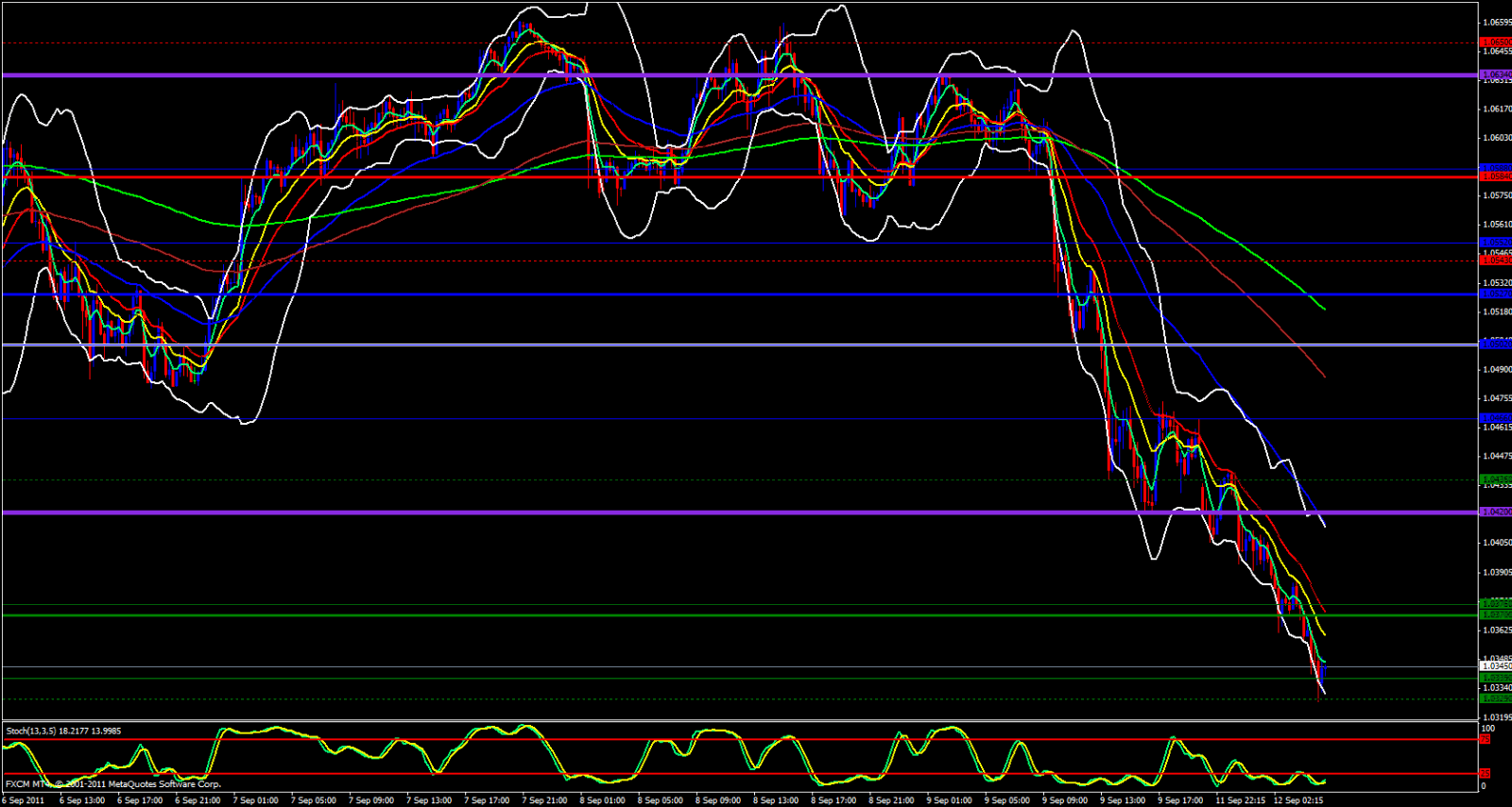 Taking all this in consideration I expect a retracement back up to the upside imminent and I would feel very reluctant to look for shorts with this paid before we make some type of a reasonable retracement back to the upside before further continuation to the down side. Always remember, price and the 5 ema have to meet up sooner or later. but I would watch out for retracements to the 1.0370 - 1.0400 area before continuing downward. 1.0377 also looks like a decent area to catch a short to the 1.0330 area.