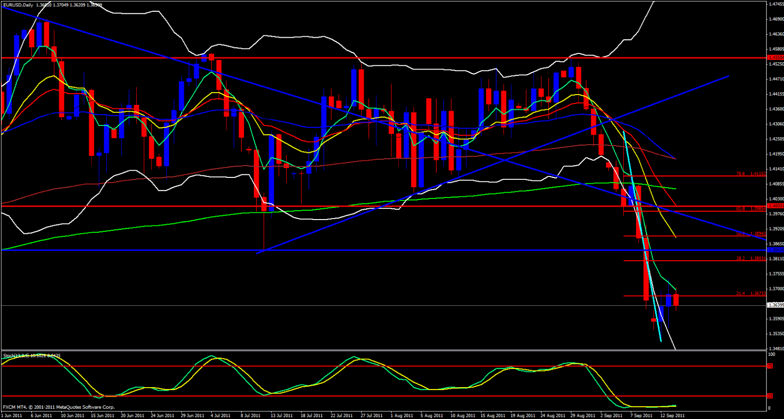 On the weekly chart we extended way outside of the lower Bollinger Band. 80% of price action takes place within the bands so price is expected to work its way back within the bands. Price also melted right through the 144 ema but was halted by the 233 ema. The 5 ema is about 170 pips above current price and price has a natural tendency to want to ride the 5 ema.
