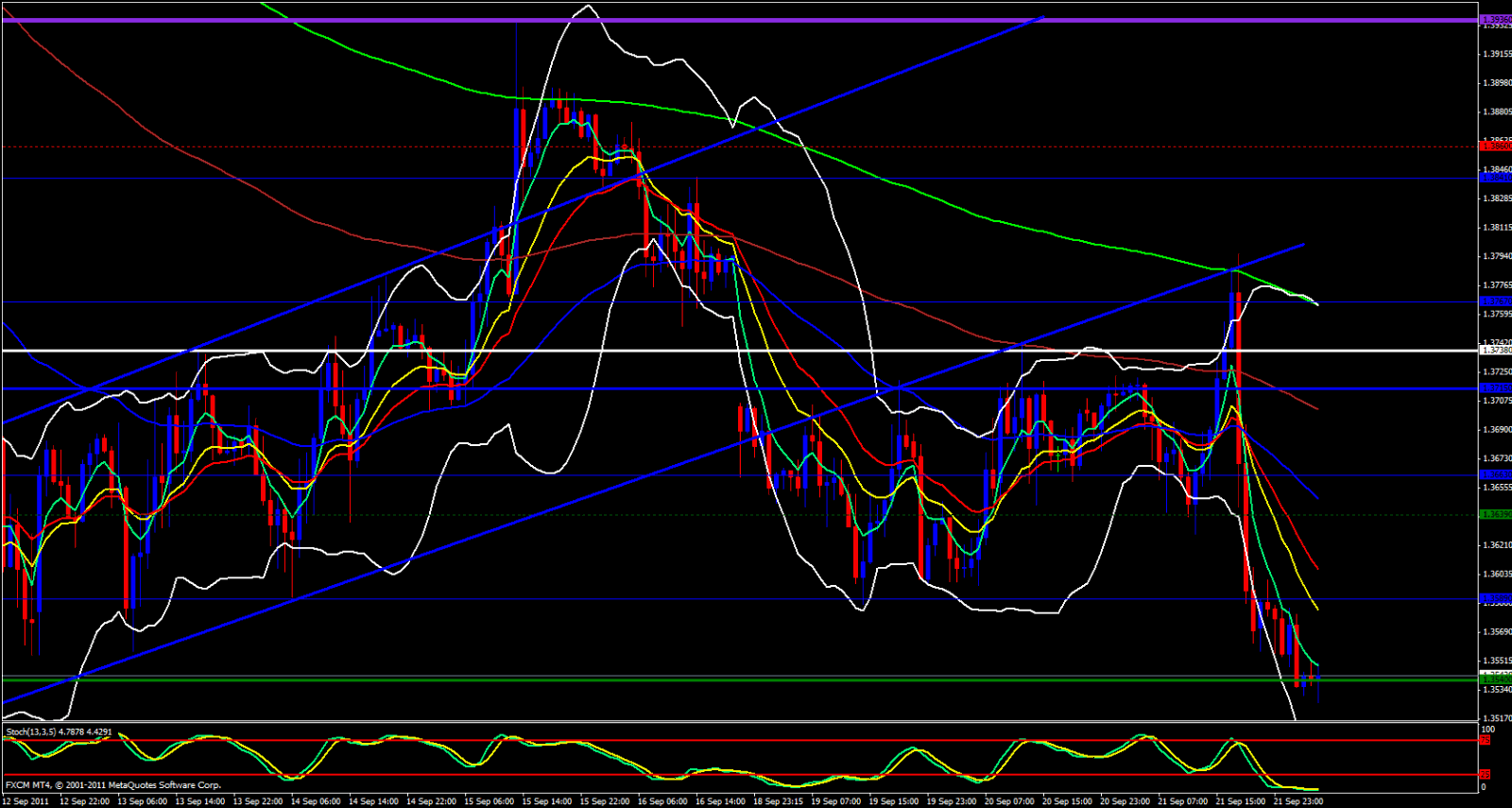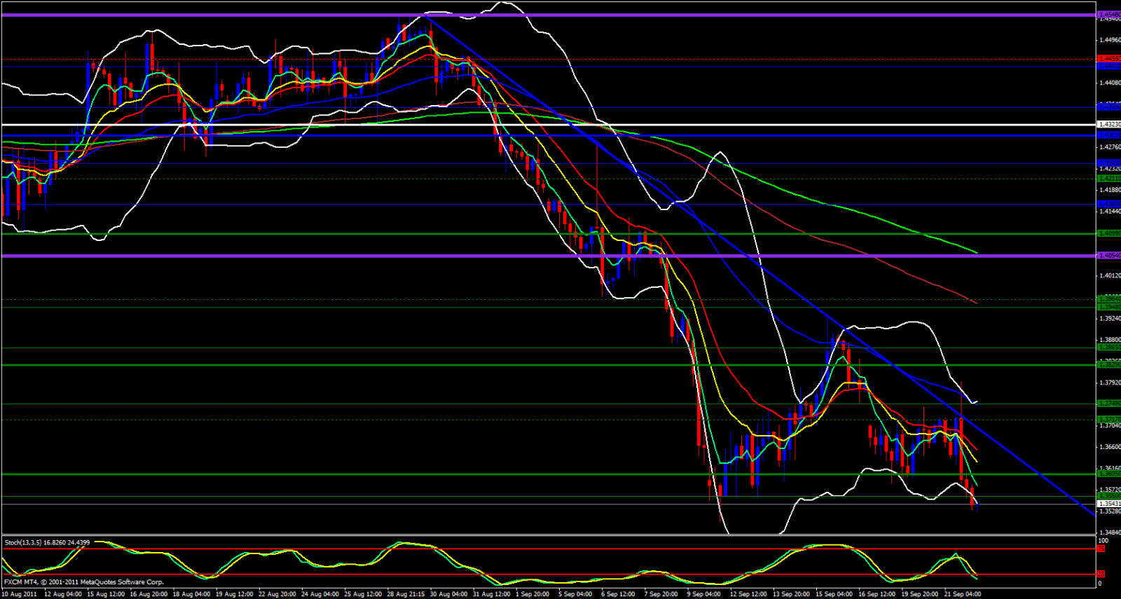 What does all this mean? Simply based on the strength of the USD we have a lot of bears in the market and we are in profit taking areas and since we have broken all the monthly pivots we need to keep an eye on weekly and daily reversal pivots since such areas do trigger profit taking and after a very bearish move, profit taking can cause a large number of buy orders causing a big move to the upside. Keep an eye on the 1.3489 price level since that is the daily S1 and that could be a likely level for profit taking. Keep in mind the exreme levels of the USD/CHF since profit taking on that pair will most definitely effect this pair.