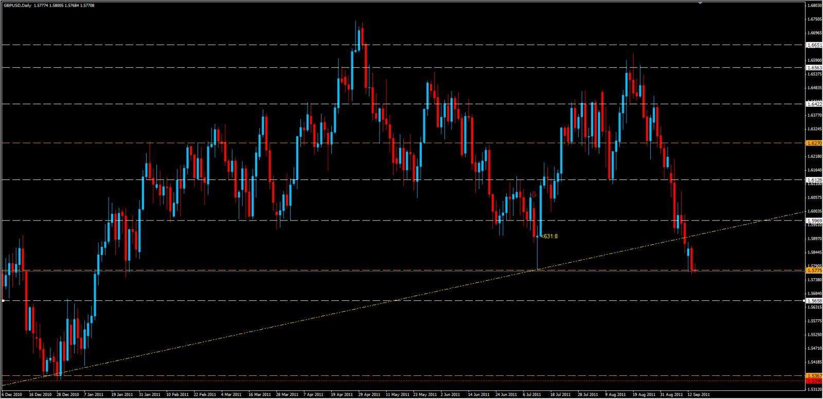 The Sterling found some support at 1.5775 during the Asian session but will it hold? Investors appear to be returning to the North American markets while they wait for the EU to come to the rescue of Greece. This converts to bearish pressure on the Sterling as the Greenback makes up some lost ground. If the monthly support level of 1.5775 holds and price turns bullish, we will look for price to retrace, most likely to the ascending trend-line we broke this week at 1.5920, 1.5975 and 1.6100 after that. If we break support at 1.5775 however we could see price fall to 1.5650 quite rapidly, and with a technical vacuum below 1.5650 price will most likely free fall to about 1.5447 with a monthly support zone below that at 1.5367. Price has not been able to break & hold below the support at 1.5775 since November 2010, this gives me pause from a selling perspective, and could be another indicator for the bulls to latch onto...