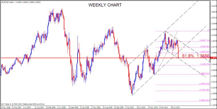 FUNDAMENTALS: The Euro fell close to 500 pips against the U.S. Dollar late last week, extending a sell-off that has taken the currency pair from 1.4500 at the end of August down to an intraday low at Friday’s close by 1.3653. European sovereign debt troubles have long plagued the currency but investors have turned a blind eye to the fiscal troubles purely due to the hawkishness of the European Central Bank as the ECB was one of the only central banks raising interest rates in 2011. Even though countries like Greece, Ireland and Portugal were burdened by slower growth, German and France, the two largest countries in the Euro-zone were still enjoying relatively steady growth. However, the rose colored glasses came off on Thursday after ECB President Trichet slammed the door on additional tightening by downgrading the region’s GDP forecasts, emphasizing the uncertainty in the global economy and expressing less concern about inflation. Additionally, there was the surprise resignation announcement by ECB member Jurgen Stark. Stark is considered one of the most hawkish members of the central bank and losing him at a time when the ECB as a whole is moving towards a more dovish stance is very bearish for the Euro. On top of that, rumours circulated around the market that Greece could default as early as the weekend. Greece has denied the possibility of default but credit default swap spreads are through the roof with CDS swaps showing a 90% chance of a Greek default. There was a bond swap that expired on Friday and the fear is that bondholders will prefer to eat the loss than swap into longer dated bonds. If the number of bond swaps fall short, Greece may find themselves locked out of the credit market and forced to default. Germany isalready preparing for a Greek default according to Bloomberg who cites a source as saying that Angela Merkel is preparing an emergency plan to shore up capital for German banks that have extensive exposure to Greek debt. The Euro-zone economic calendar is very light this week with only current account, CPI and trade numbers scheduled for release. Although the fate of the Euro will depend upon whether a default by Greece is avoided - for the time being - the path of least resistance in the currency pair is still lower.