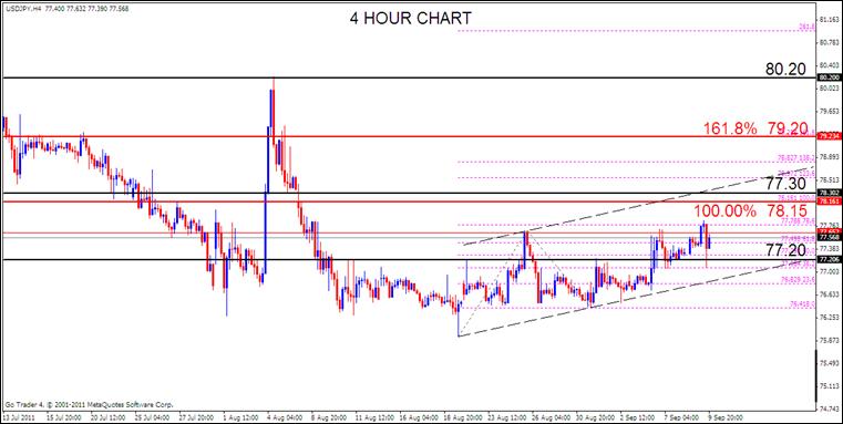 TECHNICALS: “The pair has pulled back following the test of 77. 70 but found support from just above the 77.00 figure. Despite the pullback, price is likely to drift higher to the top of the short term channel. The 100% extension of the rally from the low is potential resistance at 78.15 as is former support at 78.30. A move into the top of the channel would present aselling opportunity”. The late week dip below 77.20 does not alter our view as USDJPY continues to drift sideways to up with a selling opportunity at 78.00-78.50 levels. However, we still remain on the sidelines with this pair until a clearer picture emerges, most likely until post FOMC meeting on 20-21 September.