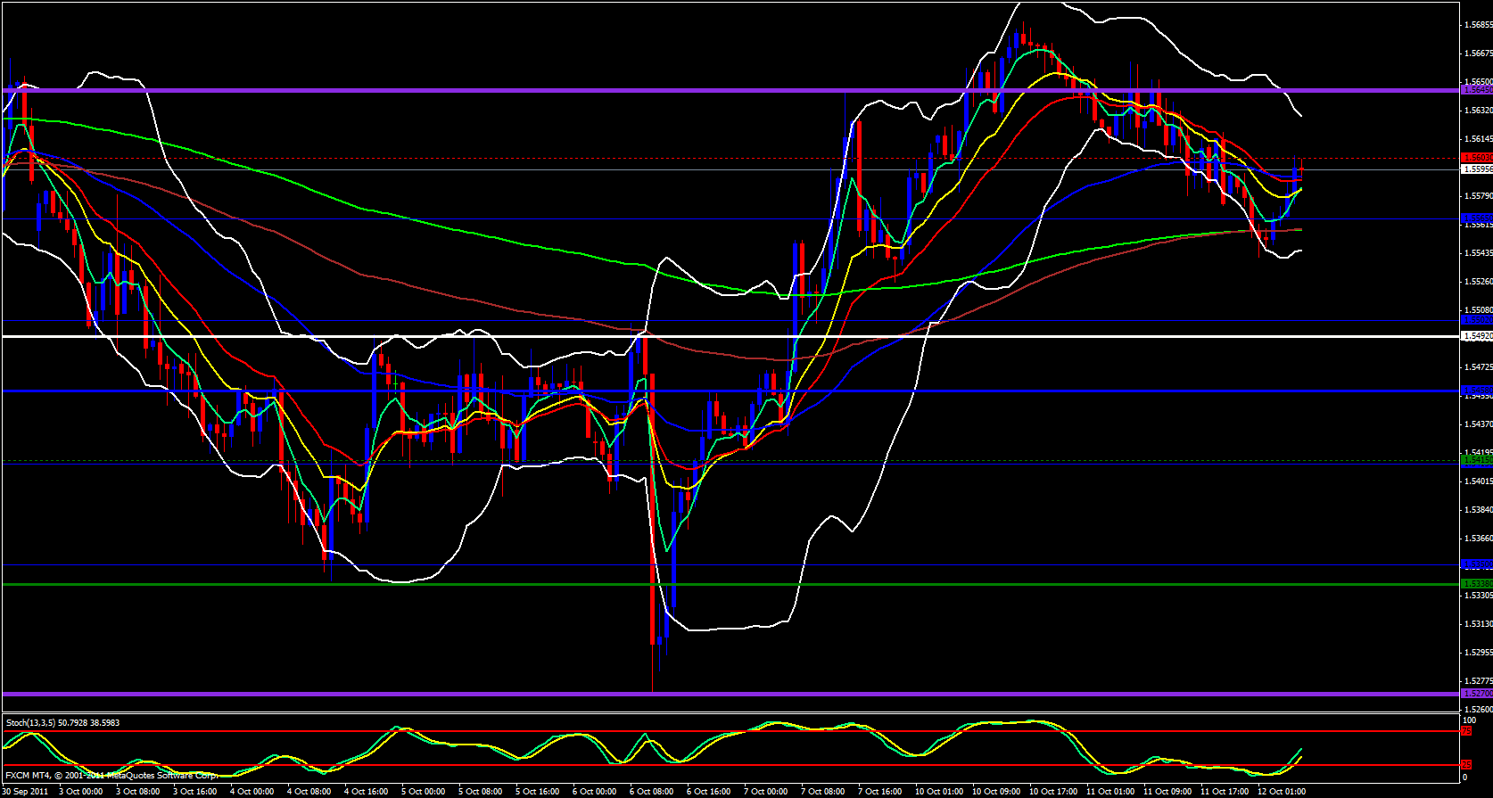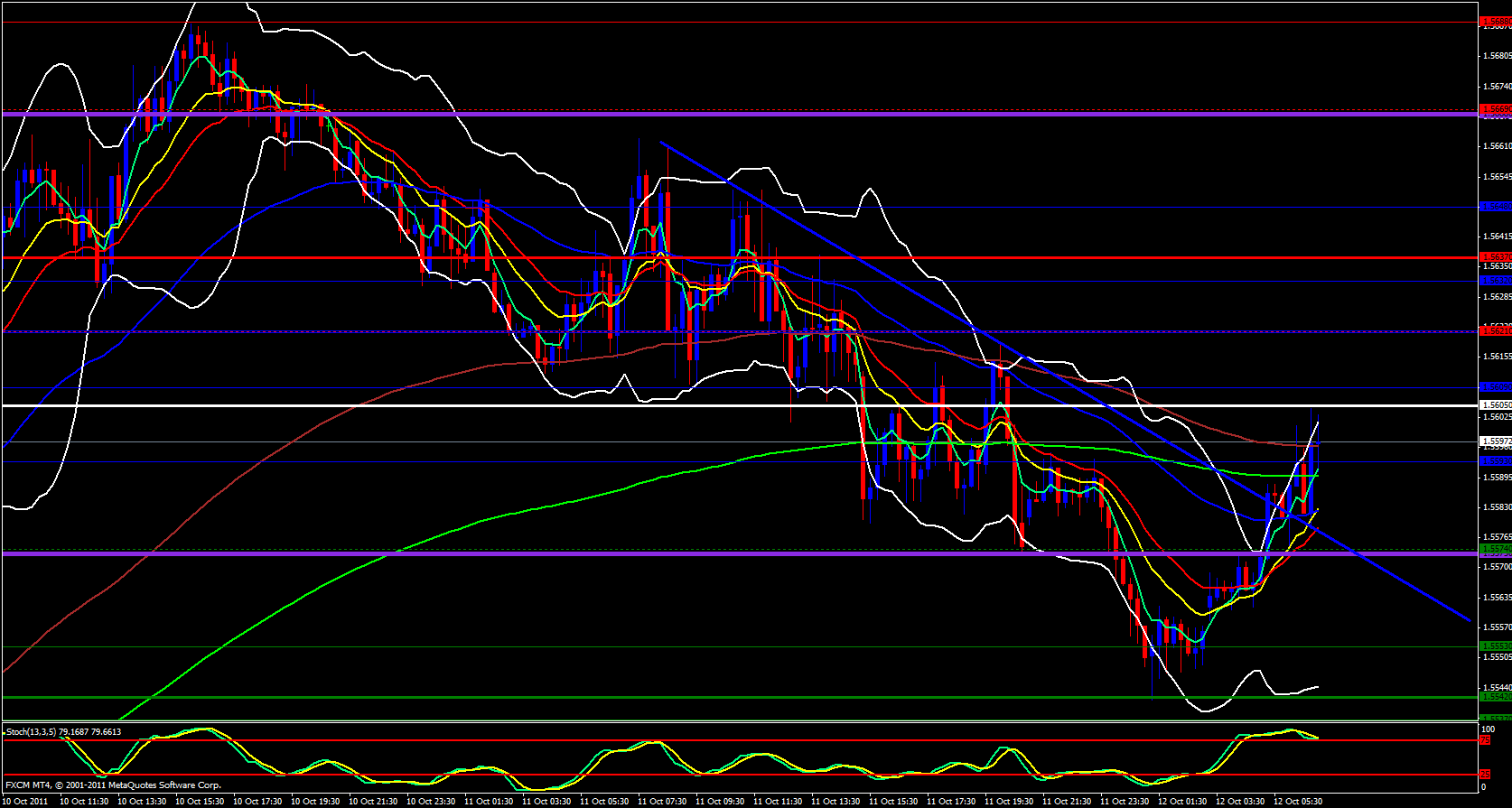 Finally, I look to the 15 minute chart and it is also very bullish in appearance. Price has been riding the 5 ema up gracefully and the 5 has crossed the 233 ema and the stochastics wants to stay in the overbought zone which is a very bullish sign. My only concern at the moment is the daily central pivot point at 1.5605, I would like to see this level broken then I will be very enthusiastic about longing this pair. So, a break above 1.5610 would be the optimum area to look for a long trade for this pair today. Expect a bearish reaction at 1.5620 which will be a decent pull back zone to enter a long.