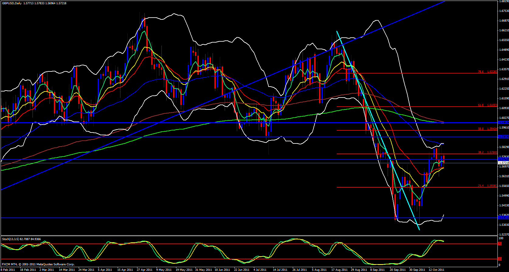GBP/USD pair bounced off the daily 55 yesterday and has fallen and bounced a bit off the daily 21 and 13 ema's. Price recently made a fib at the 38.2 level of the recent move down and the stochastics is in the overbought zone so I do expect price to continue to roll over to the downside.