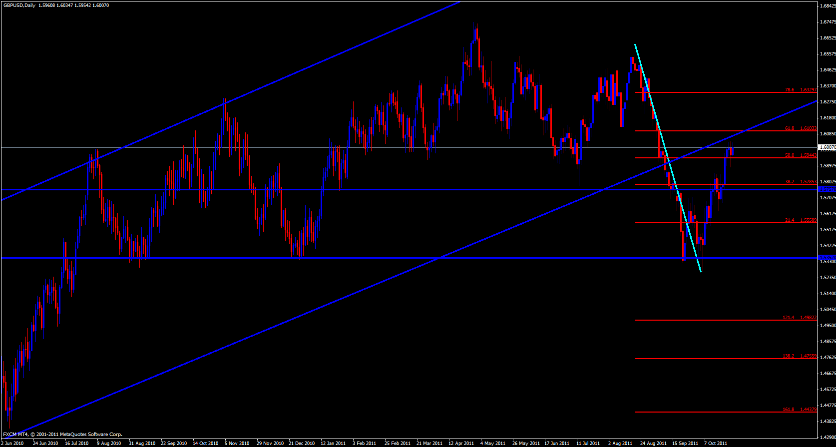 Moving on to the 4 hour and monthly pivot point chart I can see we hit the R3 at 1.6010 then retraced back down and made a 38.2 fib and price is now heading back up.