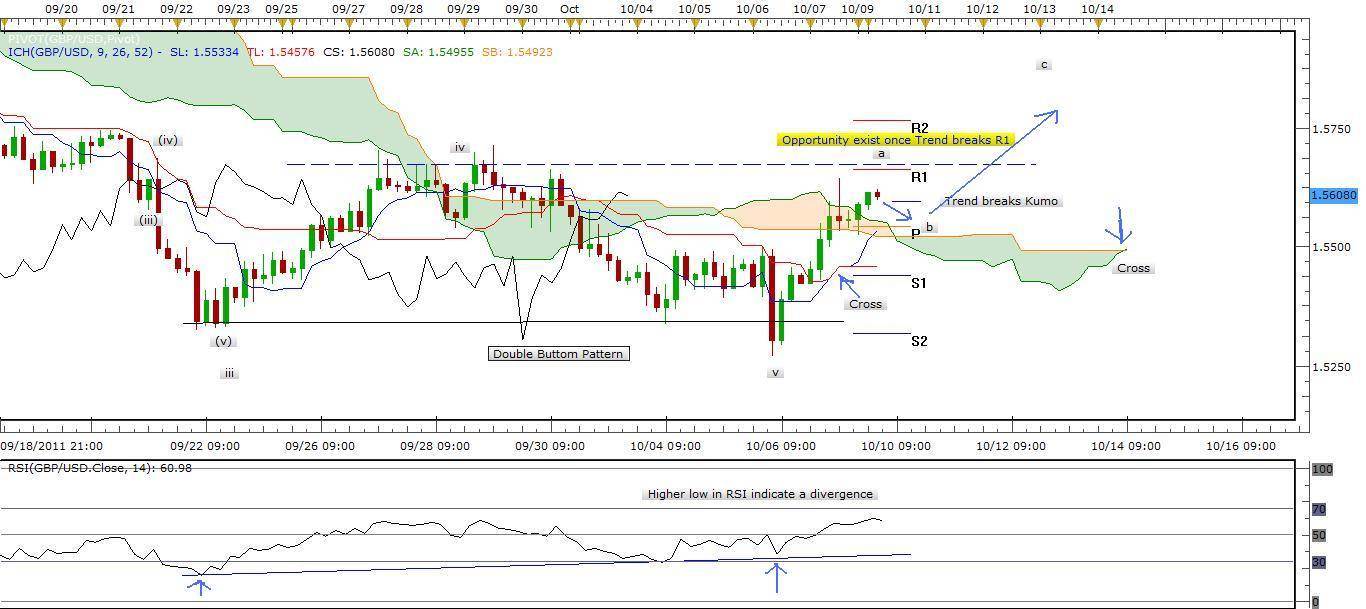 With a trend just above kumo and below R1 gives a short drop (Pullback). We see here also a double bottom with a higher low RSI that indicate a strength increasing in trend. I will trade once Trend breaks R1 level.