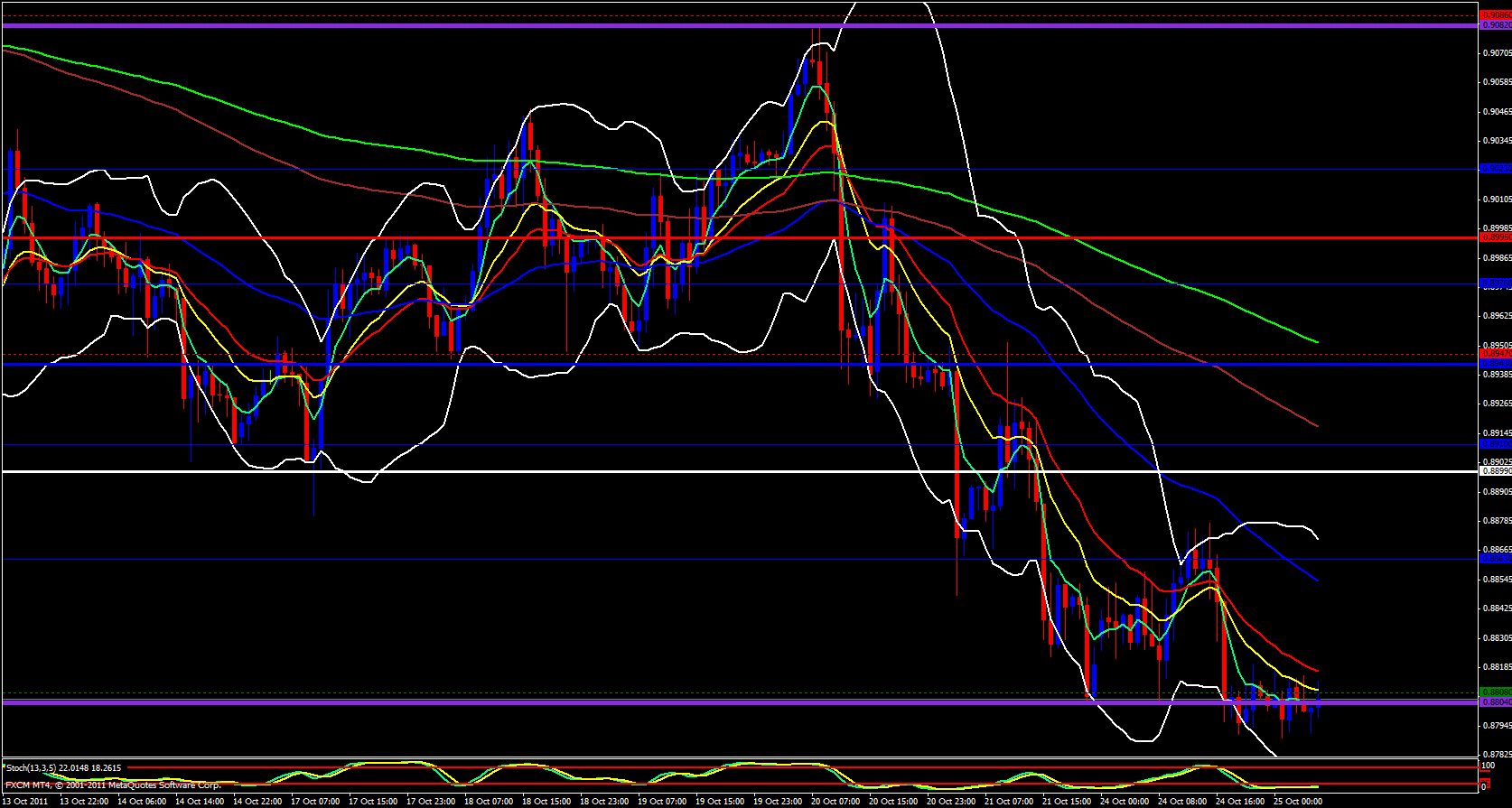 Finally on the 15 minute chart I see that price is below the central pivot point but in a consolidation range. I expect that when price reaches 0.8823 which overlaps with the daily central pivot point and the hourly 21 ema. The USD appears to be weak as of late and I expect continued bearish price action for this pair. A break below 0.8790 could be a nice opportunity to enter a short.
