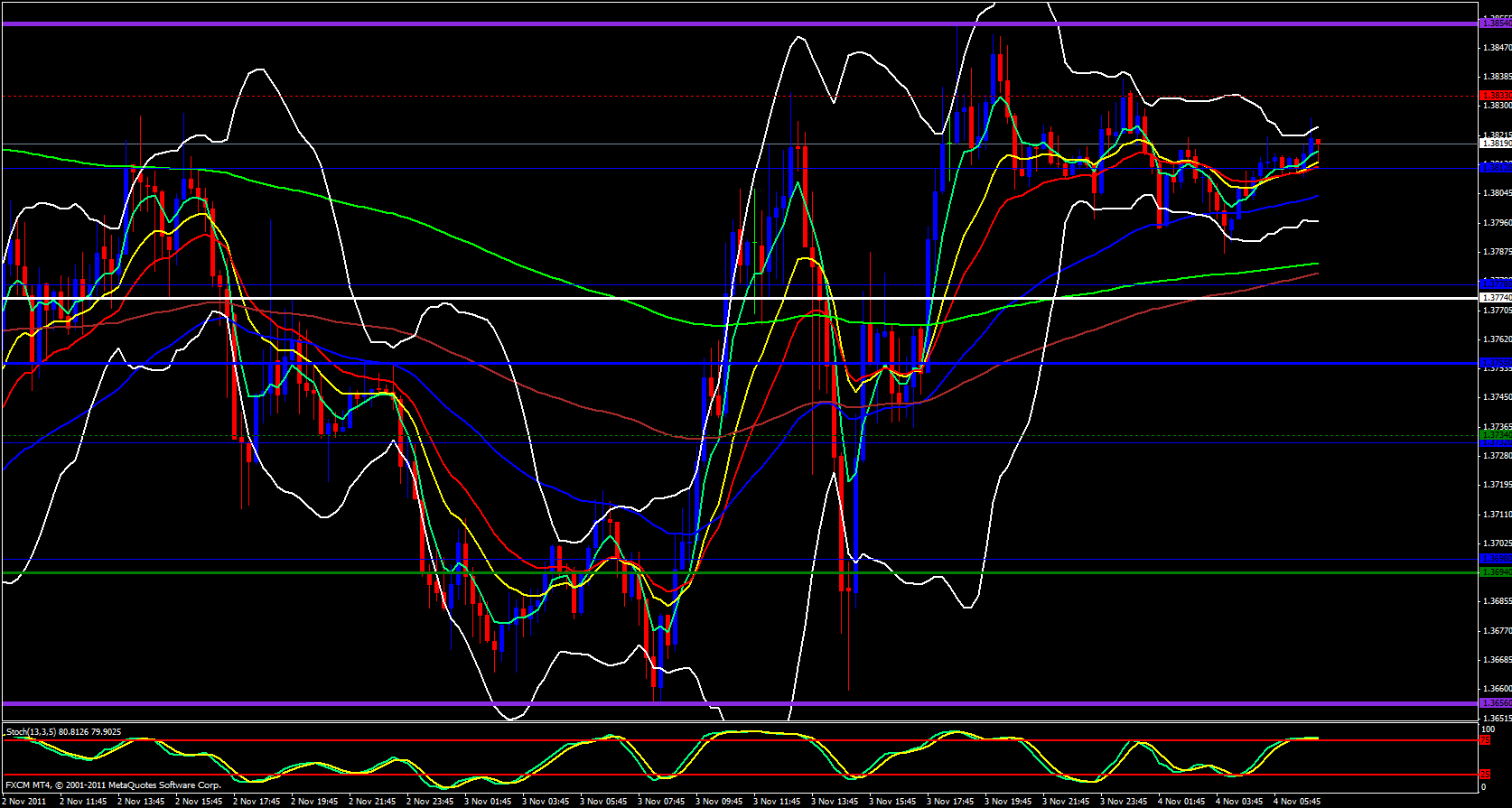 Finally, ontot he 15 minute timeframe we have already has a bullish ema crossover of the 5 crossing above the 13 and the upper Bollinger band is also opening to the upside I feel confident this pair will continue to rise. The next area of resistance I see is the daily M3 pivot point at 1.3833 which happens to be a reversal pivot point so expect some type of pullback in that area which should offer a bullish entry opportunity off of support.