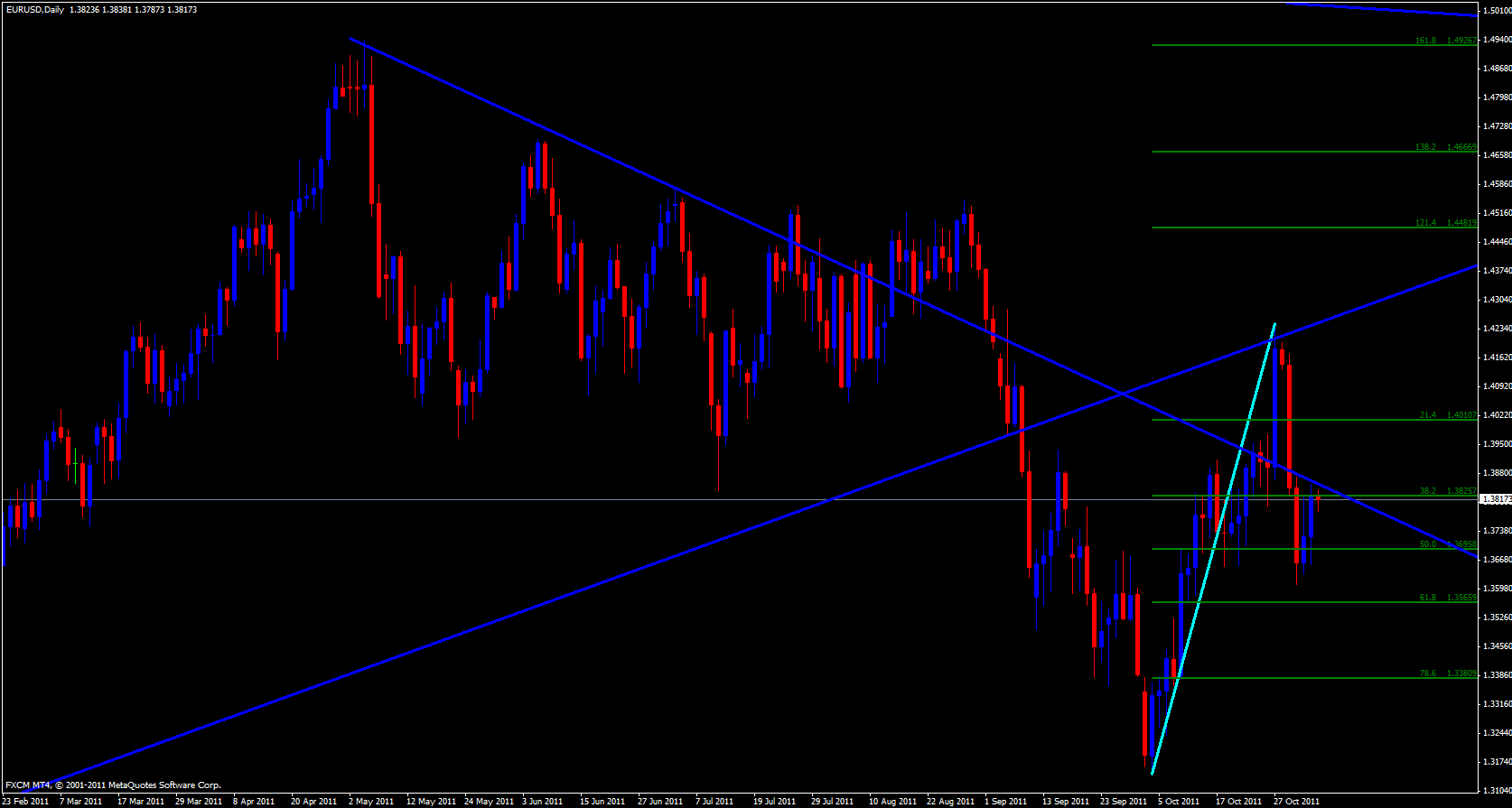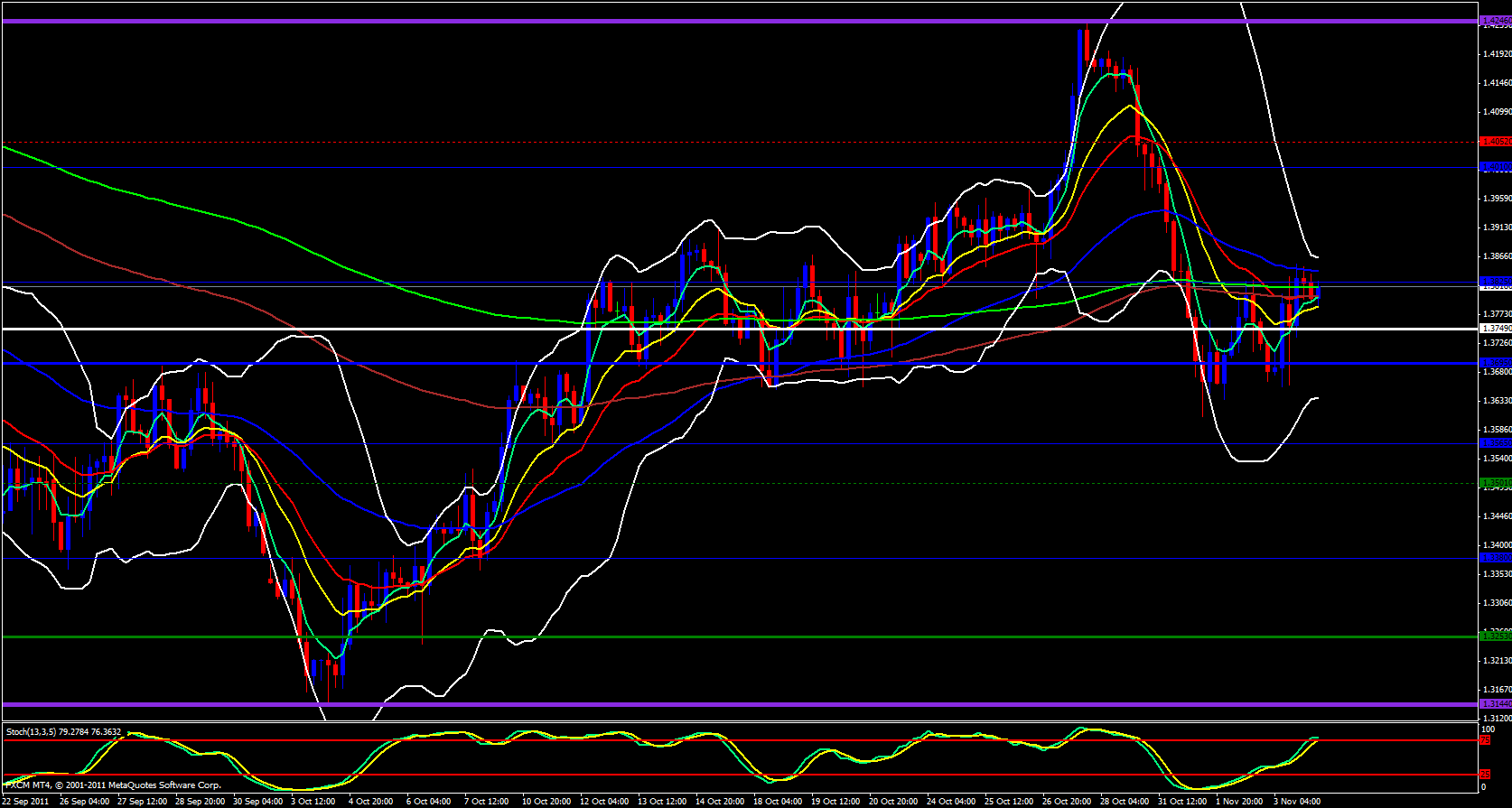 EUR/USD pair is currently crunched in between support and resistance, on the daily chart price is just above the 21ema and below the 55 ema and we are still rising from the fib zone between 38.2 and 50.0 we bounced off of a few days ago at 1.3607 which should hopefully to 1.4550 unless a reverse fib stands in the way.