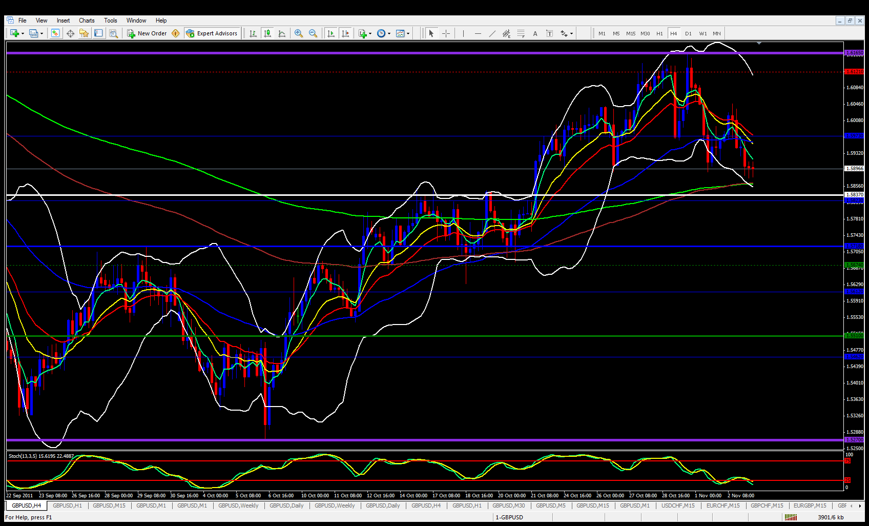 Moving onto the hourly weekly pivot chart price has bounced off the M1 pivot at 1.5877 and has made contact with the 5 ema which seems to be forcing price back down.