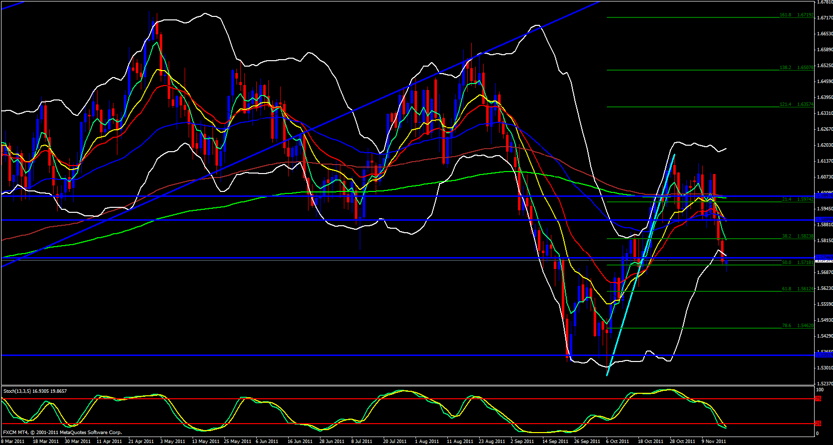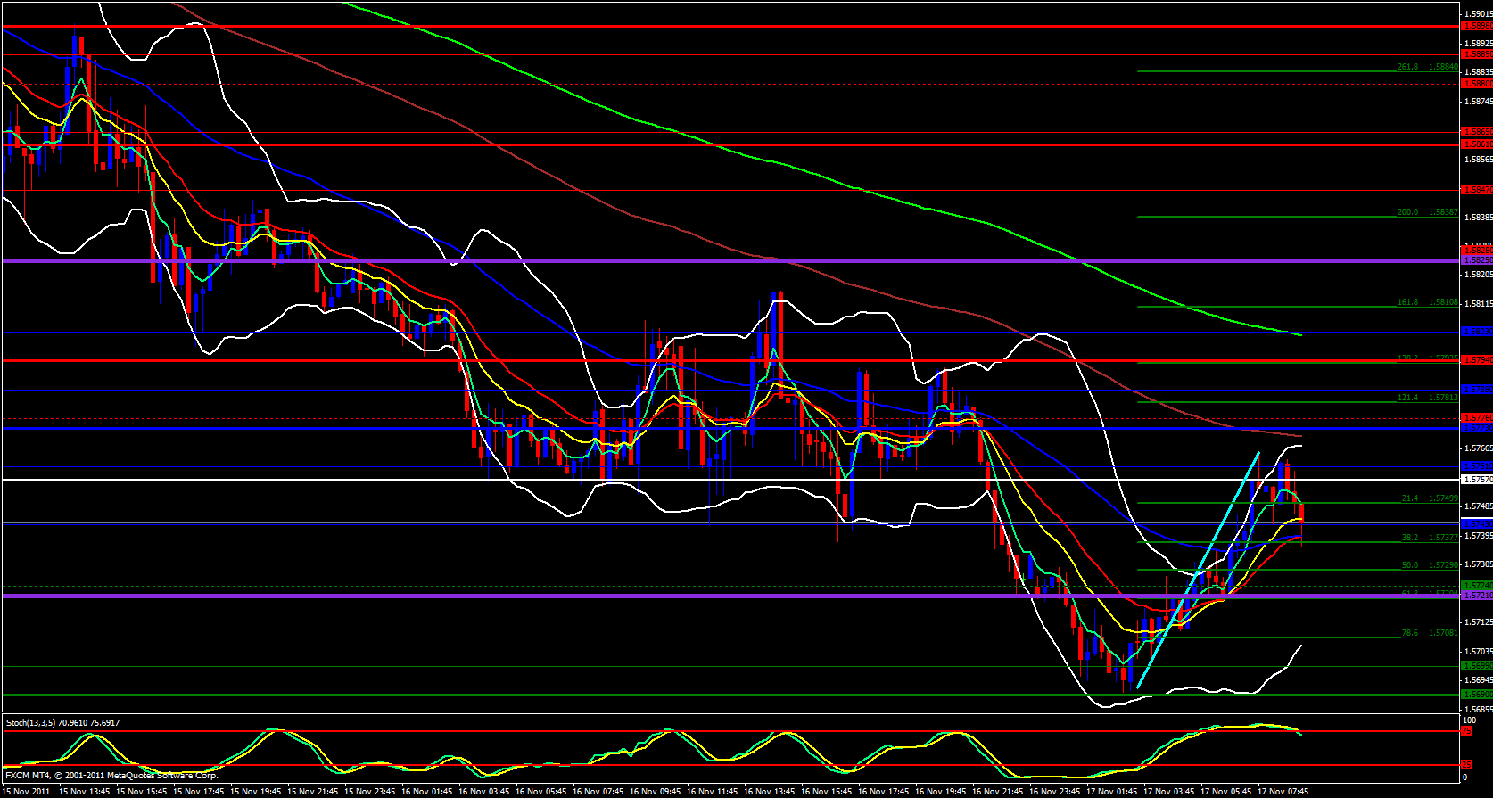 The GBP/USD pair is a bit of a mixed bag today. Sure it looks bearish to me and as weak as the EUR has been as of lately the GBP even weaker. At the same time it seems that the USD will pick up some more strength today since the USD/CHF is at a fib level overlapped with a central pivot point and a stochastics in the oversold zone I expect a USD jump so a bullish USD/CHF and a bullish EUR/GBP indicate a bearish GBP/USD.