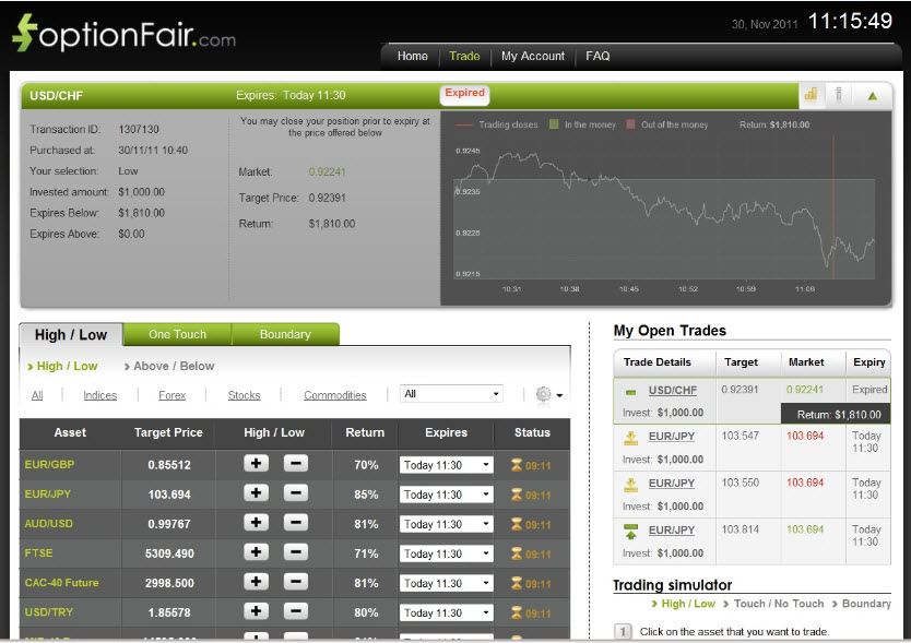 I placed $1,000 on “Low” at optionFair™ Binary Options Trading Platform with