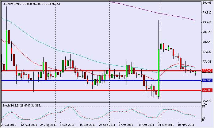 The Japanese Yen is not impressed by the everything that is going on in the financial markets and it keeps strengthening. If the BOJ does not interfere soon, the investors might take the JPY to the level of 75.5 again. Meanwhile, the pair has returned to the channel in which it was traded before the BOJ intervention (76.5-77) and it might be held there for weeks until it breaks on of the channel's boundaries. A break-up of 77.0 will be a bullish signal for the USD, but a break-down of 76.5 might start a new bearish session.