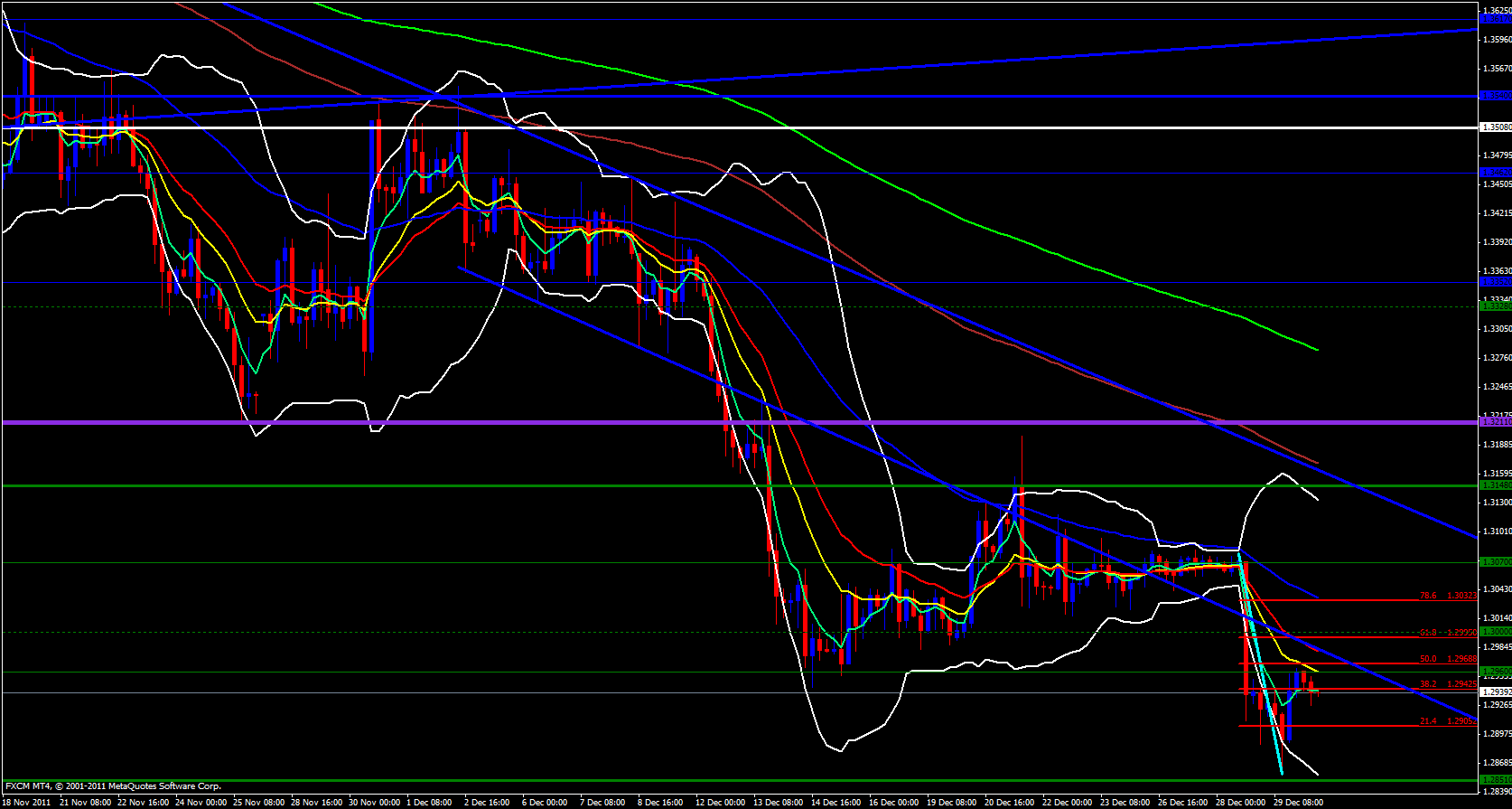 At the time I am writing this analysis the 5 ema is crossing below the 13 and 21 which is a very bearish signal. So, watch for short opportunities for this pair and watch out around 1.2855 area for surely there will be profit taking at that level causing a bounce to the upside. That same level also coincides with yesterdays low, monthly S2 Pivot and weekly S2. For those of you that don't make that short look to fade that fall and look for long opportunities at that level as well. If price breaks below that level, wait for the retest and enter a short. I personally don't dig profit targets so much. I generally prefer to move my stops and keep moving them protecting more and more profit until I finally get stopped out.