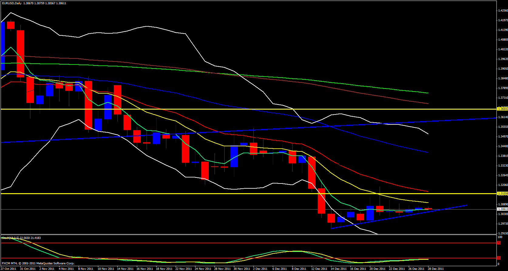Yesterday's range for the EUR/USD was only 41 pips, that is only a third of the norm. The previous 4 hour range was only 11 pips, the previous hour and 15 minute ranges only 1 pip (see Doug's Matrix). This is all based at the time I am writing this analysis.
