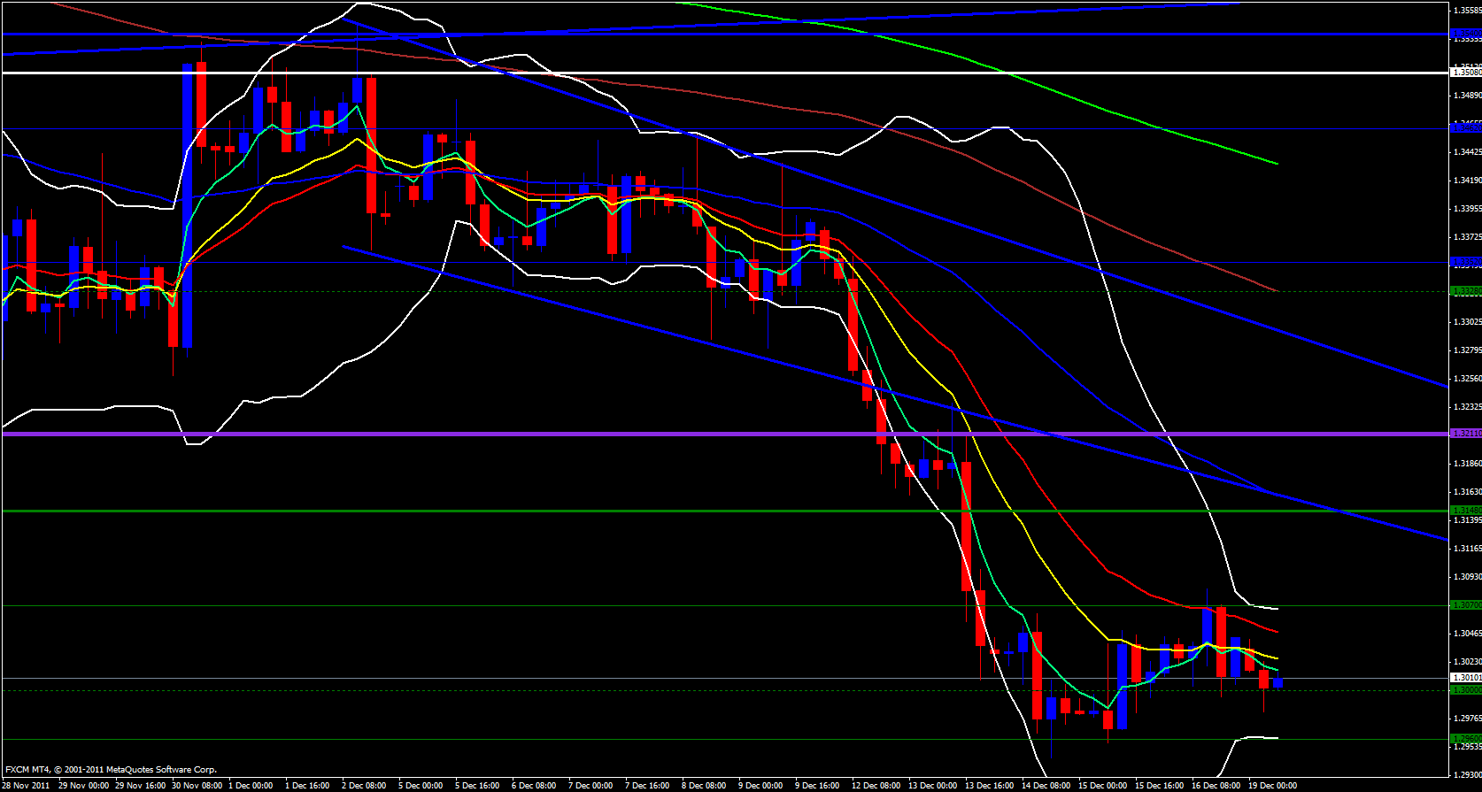 On the 4 hour time frame the 5 and 13 ema's have lost their angle and separation between each other so price action may be about to shift over to the upside.