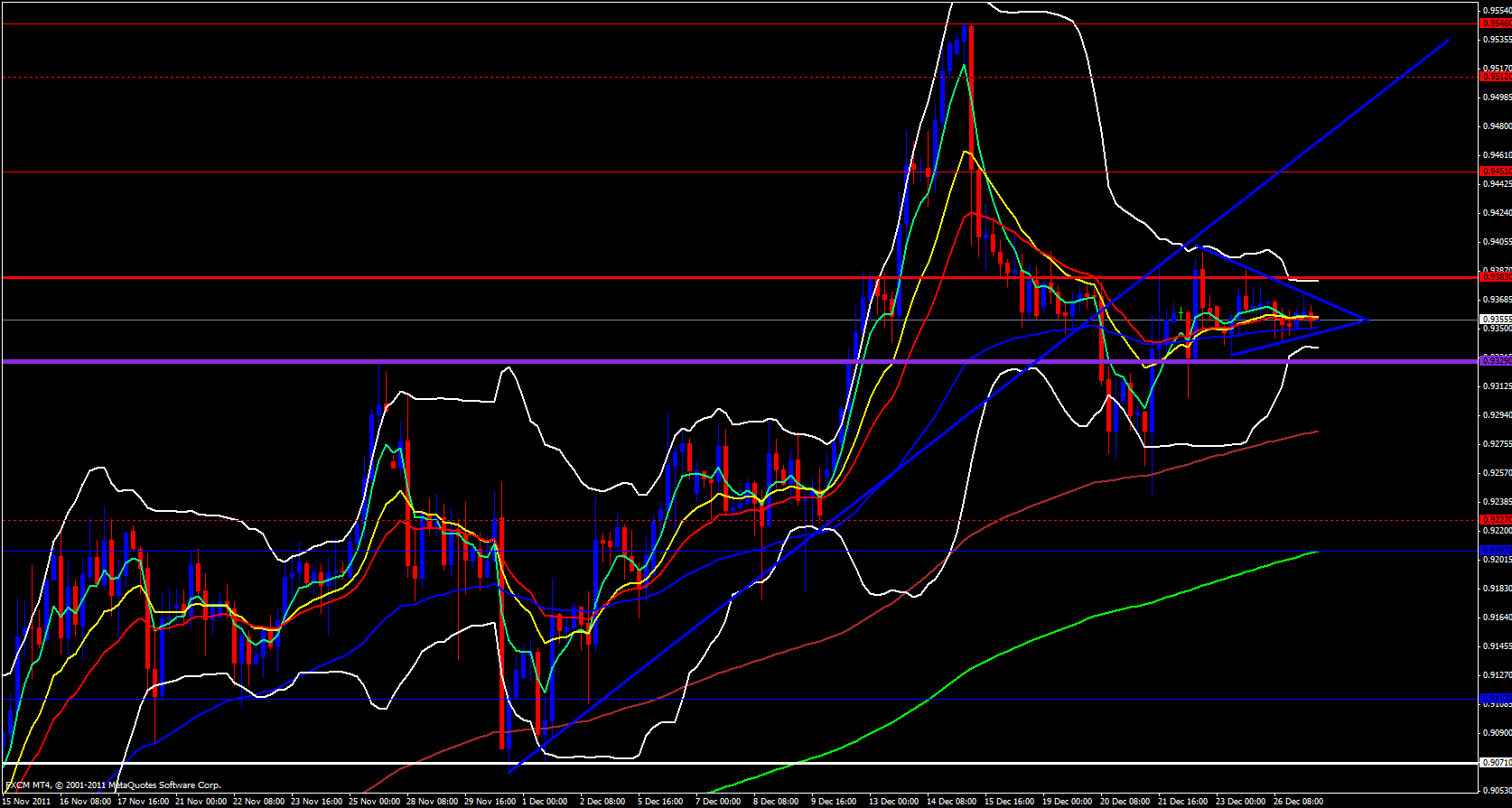 On the 4 hour timeframe it is evident that price is heading up since we are getting a series of swings fibs to the upside. I currently have this pair and timeframe in a triangle price trap and a break above .9385 which happens to be the monthly R1 pivot and a retest will surely confirm that price is heading up. At this very moment price is just above the 4 hour 55 ema and I cannot imagine price will fall below it.