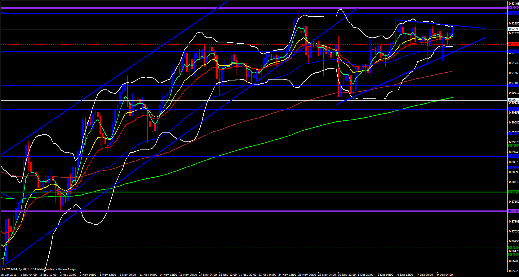 On the daily time frame price is nearing the .9315 which has help up as resistance several times in the past and was brief support shortly before being reached. Technically speaking this is the area where price could tank. Or will it break out above .9315?