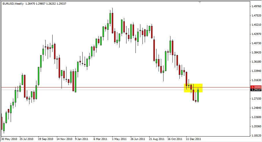 The EUR/USD pair looks like one that will continue to bounce around in the range that it has been stuck in lately. While the world waits to see if the Greeks can come up with a “voluntary solution” to be put in place for their bond holders, the markets will probably sit in a range. However, there is one area to watch closely: the 1.30 level. If this area gives way to the upside by virtue of a daily close over the 1.31 mark, this pair will probably get a bid to 1.35 or so. Having said all of that, the issues in Europe are structural, and aren’t going away anytime soon. But we must admit that the nature of this pair suggests that a rally will be forthcoming soon so the bulls can have their say. Selling is still preferred overall though, and signs of weakness are what I am looking for. The pair is so volatile, there is a good chance I will ignore it for the week as there are other charts that are much more appealing.