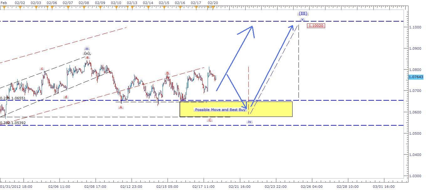 Description: Cycle in AUD/USD is within range of wave iv of iii and soon will be heading to v and to complete the larger III before it gets into more complex waves. However, the best buy is within 1.0600 range or near 0.382 Fib level once trend failed to this important level for this cycle and hit 0.236 instead. In this case we need to watch the market and act once trend select its direction. Anyhow, I am long here and will post my update later on Aussi.
