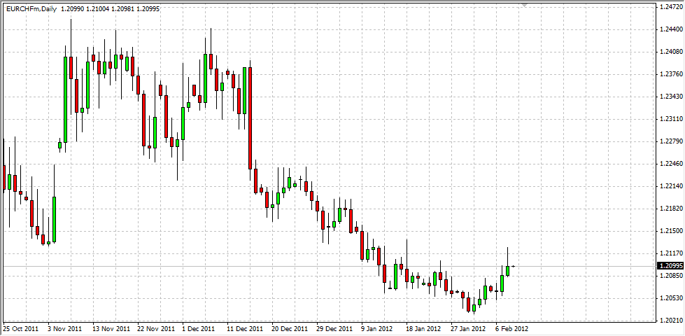 The EUR/CHF pair rose for much of the session on Wednesday as word got out that the talks between the Greeks and the Troika were progressing quite nicely. However, at the end of the daily session, there was no agreement, and the rally fell to form a daily shooting star candle.