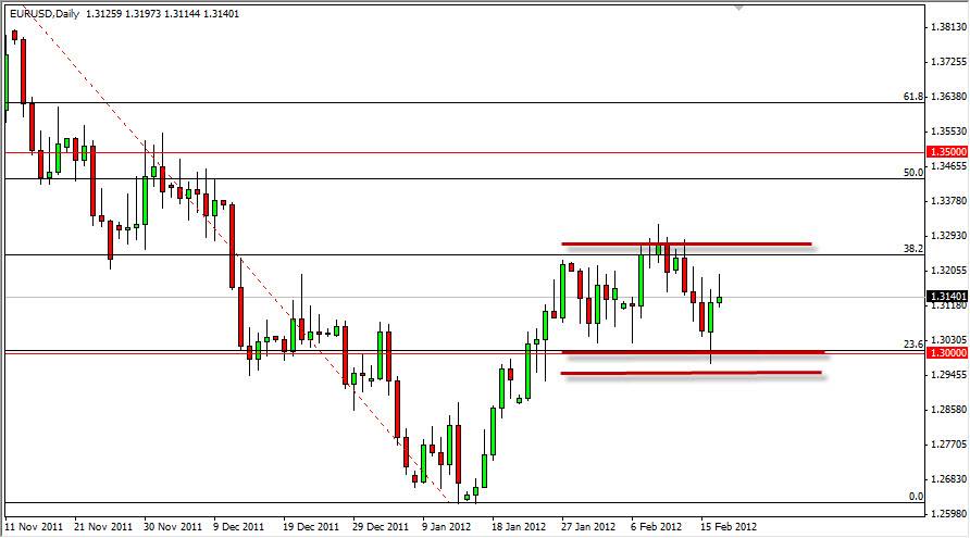 The 1.30 level extends down to the 1.29 level as massive support. It seems that every time the pair gets below 1.30, some kind of announcement comes out to push it up again. Hard to think someone isn’t trying to manipulate the market there. The 1.3250 level is massive resistance, and as a result I think this pair will stay in the area unless something really gets going in the meeting on Monday. (Good or bad.) With this in mind, I am selling on a daily close below the 1.29 level, and am willing to buy above the 1.3250 level. In the mean time, hang on for more noise and drama.