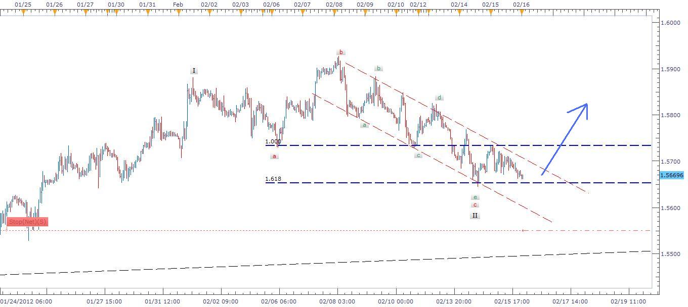 Description: Expanded flat started beginning of January and hit 1.618 Fib level on 14 Feb and the pair found a good support at 1.56500 which is expected to be wave II. Let's wait and see what come next to expanded flat. It might be another Zigzag, or a larger wave III. I suggest to hold the pair with an open target and watch for good news.