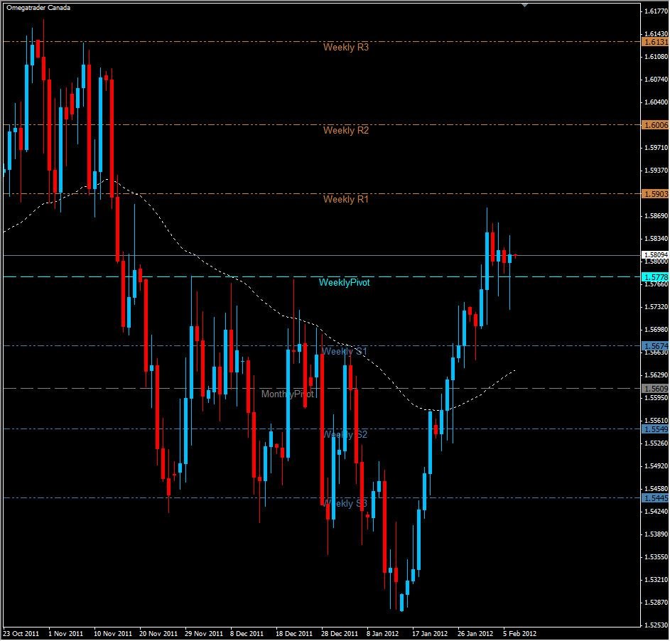 It is probable that we will see the Sterling re-test 1.5730 if we clear 1.5778 and a close below 1.5730 could suggest a run for the monthly pivot at 1.5600. With the pair being bullish for some time now, this is most likely a consolidation effort before pushing higher. Resistance to the upside can be found at 1.5840 with a weekly S/R zone at 1.5903. The pair will have a fight on its hands going either higher or lower with heavy traffic found both above 1.5900 and below 1.5770. I am neutral on this pair until I see a break one way or the other.