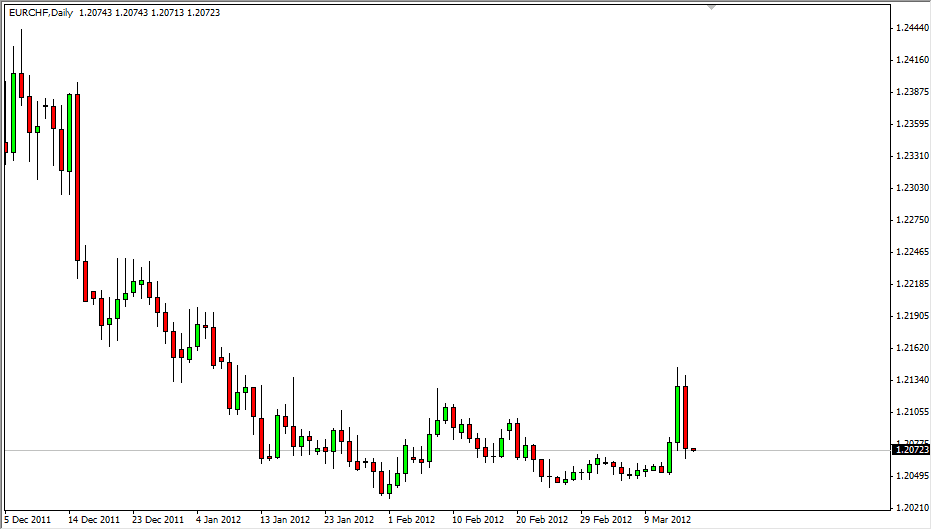 One of the pairs that I get the most questions about is the EUR/CHF pair. Normally, it revolves around the wisdom of buying this pair, as the Swiss National Bank currently has a “floor” in this pair at the 1.20 handle. As a matter of fact, the trend was stopped cold when the SNB actually used the language of “minimum acceptable rate of 1.20 Euros to the Franc.” They also mentioned that they were prepared to buy “unlimited Euros” in order to keep this pair higher. Central banks don’t use language like this – ever.