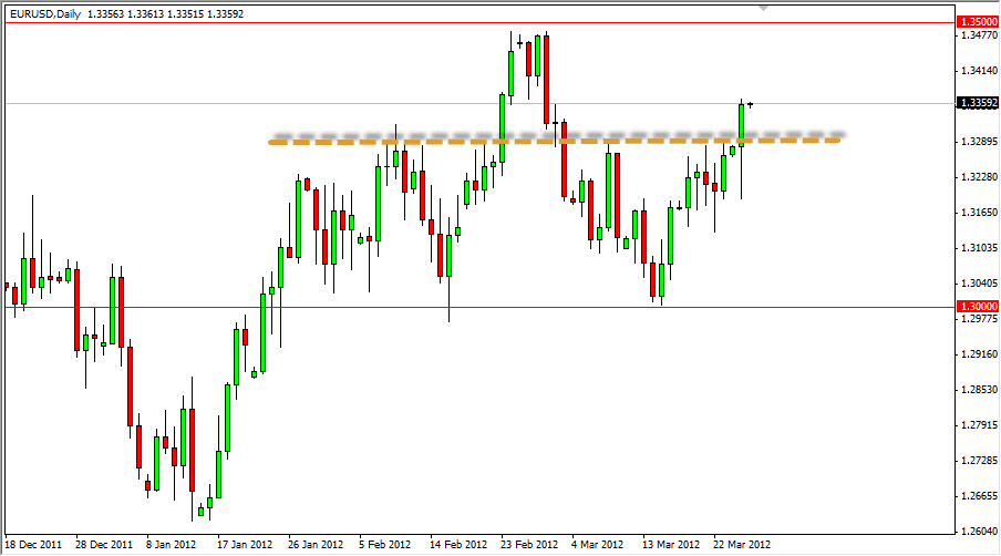 The EUR/USD pair has been an interesting one of late to say the least. The pair has been in a tug of war between those who worry about the issues in European debt markets and those who think the United States will continue to ease monetary policy. The answer may have come on Monday as Ben Bernanke suggested that the low interest rates would continue for a long time. The recent speculation of traders has suggested that perhaps the Fed would have to start raising rates before initially thought, and as such the Euro had been struggling.