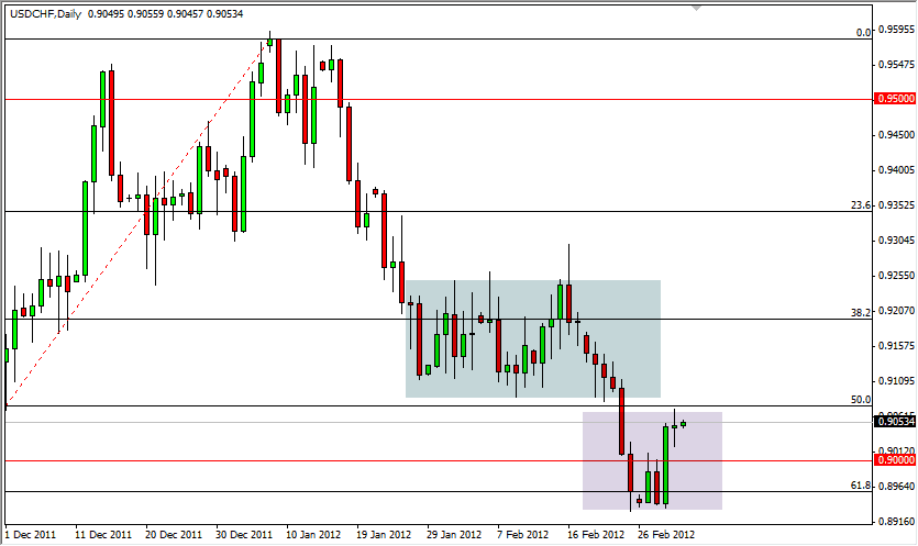 The USD/CHF pair has recently been affected by the goings on in the EUR/CHF pair. The Swiss National Bank has a standing “minimum acceptable rate” of 1.20 for the EUR/CHF pair, and as a result, most CHF-related pairs are being manipulated by proxy. This is because the market for the Swiss franc is one of the most illiquid of the majors.