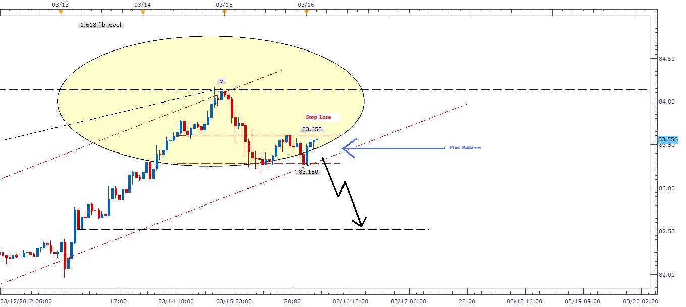 Description: After price drop yesterday from 84.137 to 83.280, the trend got into a flat cycle which could be a continuation of more drop. Just to be in the safe side, I would suggest traders to move Stop Loss to 83.700 to secure profit and to keep short position if price broke 83.150 level for further drop. In case price broke 83.150 level, I would expect next target at 82.60.