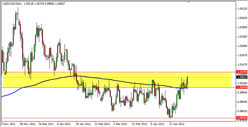 USD/CAD had a bullish session on Tuesday as the “risk off” trade continues. The commodity markets all took a beating as the Dollar reigns supreme. For all of the talk about the Dollar no longer being the safety trade, we are seeing yet another example of how this isn’t true. The Dollar is still the first place that traders run to when there is serious trouble or concern in the markets.
