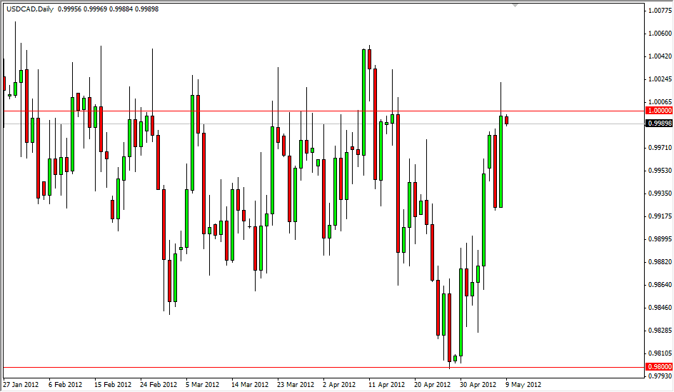 The oil markets, the Light Sweet Crude market specifically, are testing the $95 level. This area is absolutely vital for the markets to continue to be bullish, and if it gives way, the Canadian dollar will suffer. The parity level in this pair has been a bit of a proxy for the $95 level in oil, and as one goes, so goes the other.