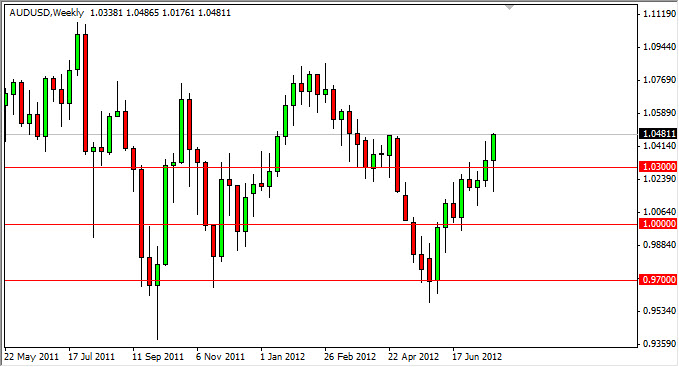 The USD/CAD fell hard during the week, and even ended at the lows. However, I see the pair as sitting just on top of massive support, so selling is almost impossible at this point. The oil markets will of course be very influential in this market, and as such we need to keep an eye on oil as we trade it.