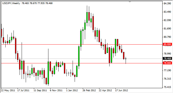 On the flip side of the “risk” trade, the Aussie took off on Friday to finish the week strong. It is at the top of a recent up trending channel, and because of this I think a pullback could be coming. If this is the case, it more than likely will simply be a buying opportunity as the gold markets look strong also. With all of the easing out there, the Aussie should do well over the next several weeks if not months.