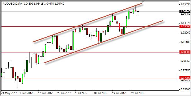 This pair has been steady and its climb over the last couple months, it should be noted that we are currently in an up trending channel. The fact that we formed a shooting star at the top of that channel suggests to me that perhaps we are getting ready for a pullback. Adding to that is the fact that it happened at the 1.05 level, and you have a pretty decent sell signal in my opinion.