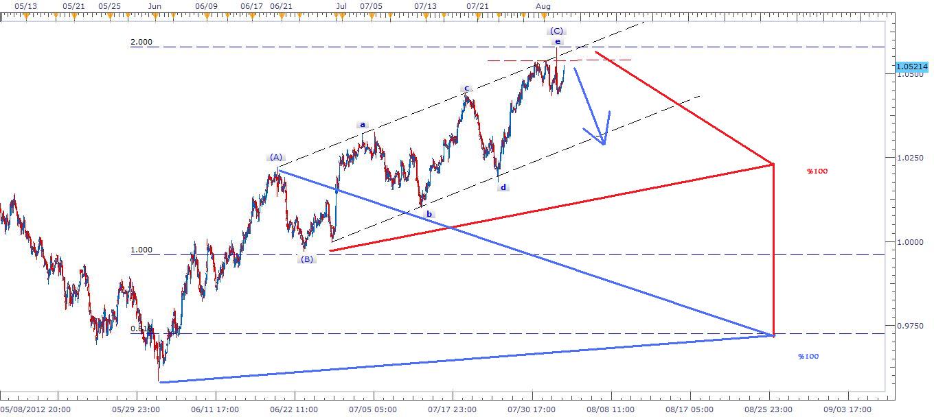 Description: A recognized Zigzag pattern has completed %100 which indicate a possible change in direction. You notice a red %100 is equal to blue %100 with main motive in (A) and Diagonal in (C). I would short the pair for expected drop. All the best in this trade!