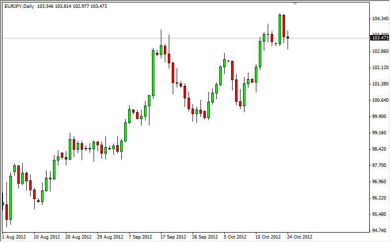 This is generally a sign of a nice strong "risk on" type of marketplace. As there seems to be a bit of a selloff recently and I cannot help but notice that this market has held up relatively well. Stock markets have fallen, but this one is simply sat still. Because of this, I think that this market does indeed rise over time and on a break of the highs from the Wednesday session I would take is classic technical analysis signal in start buying this pair. As for selling, I really don't have a plan to, unless we break below the 102.50 level.